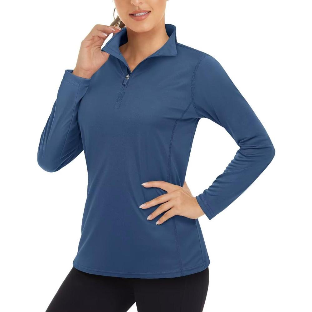 Boladeci Women’s UPF 50+ Sun Shirts 1/4 Zip Lightweight Long Sleeve Summer Tops UV Protection Quick Dry Golf Shirts(Blue Gray)