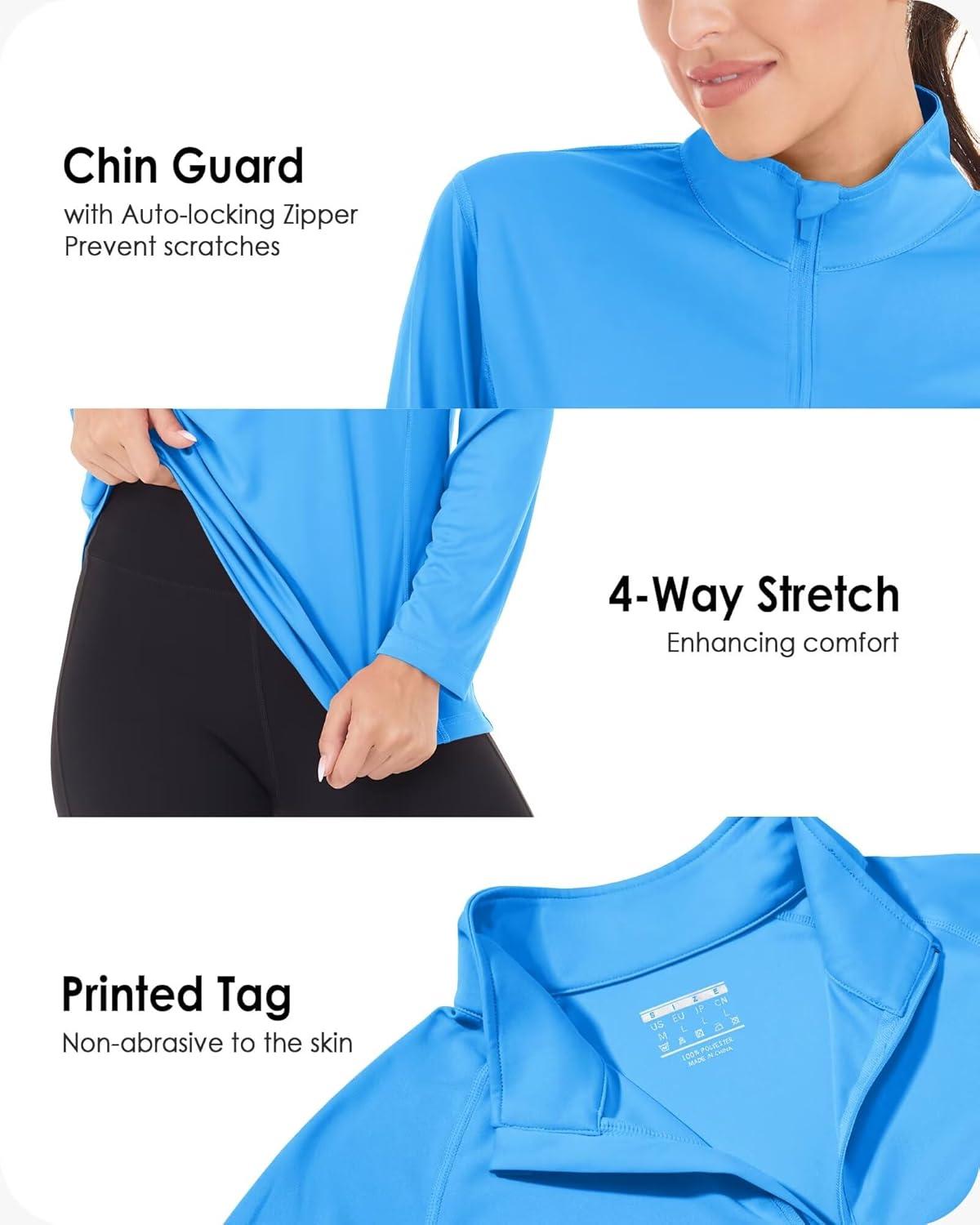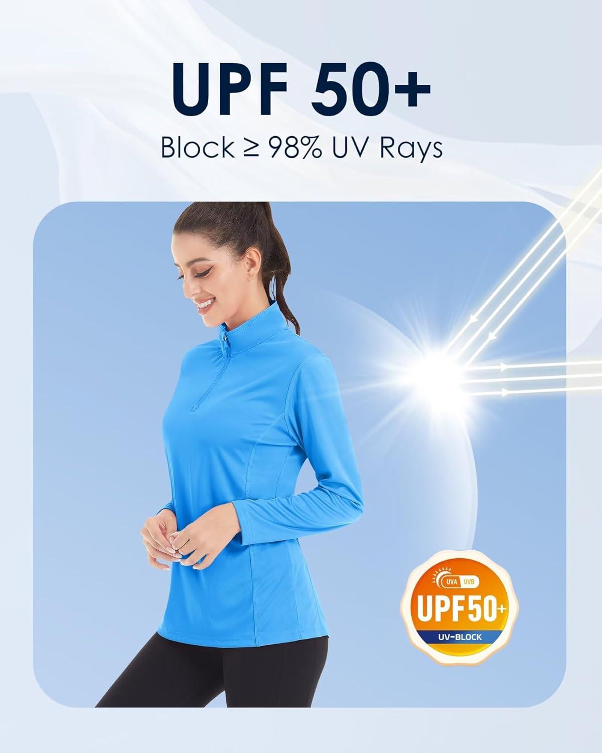 Boladeci Women’s UPF 50+ Sun Shirts 1/4 Zip Lightweight Long Sleeve Summer Tops UV Protection Quick Dry Golf Shirts(Blue)