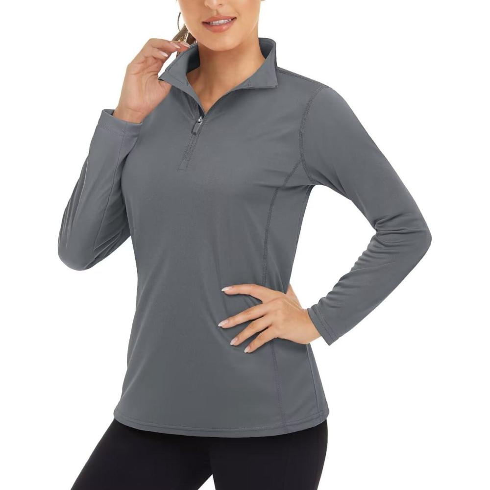 Boladeci Women’s UPF 50+ Sun Shirts 1/4 Zip Lightweight Long Sleeve Summer Tops UV Protection Quick Dry Golf Shirts(Dark Gray)