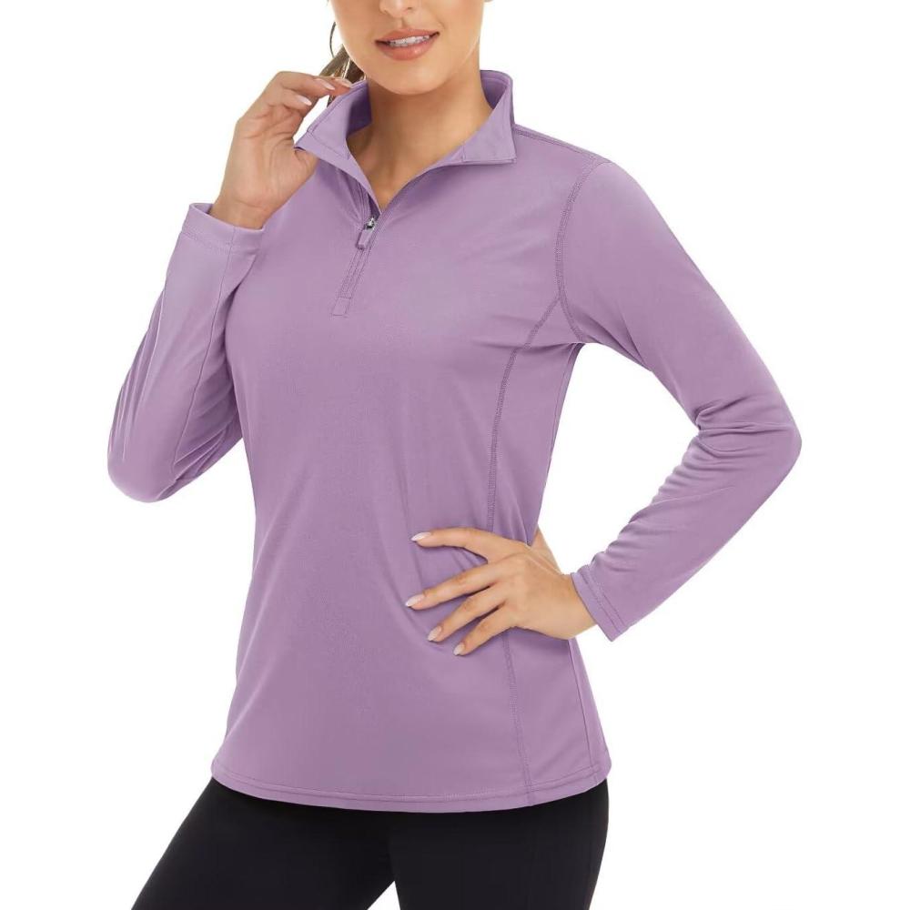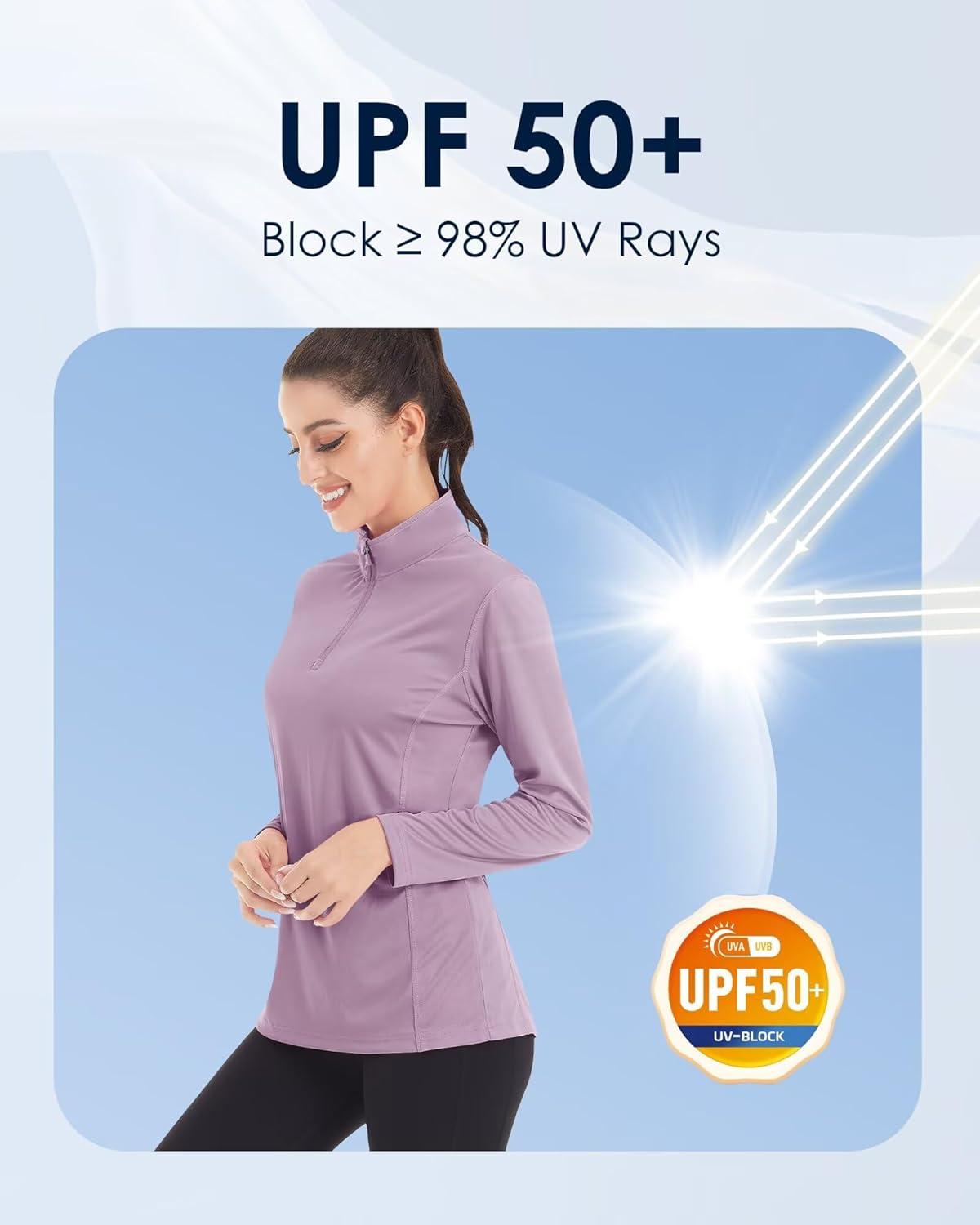 Boladeci Women’s UPF 50+ Sun Shirts 1/4 Zip Lightweight Long Sleeve Summer Tops UV Protection Quick Dry Golf Shirts(Gray Purple)