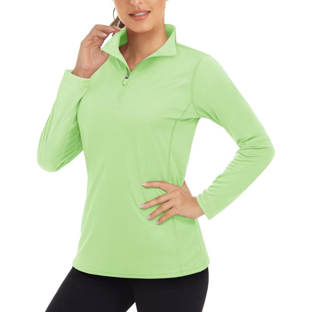 Boladeci Women’s UPF 50+ Sun Shirts 1/4 Zip Lightweight Long Sleeve Summer Tops UV Protection Quick Dry Golf Shirts(Light Green)