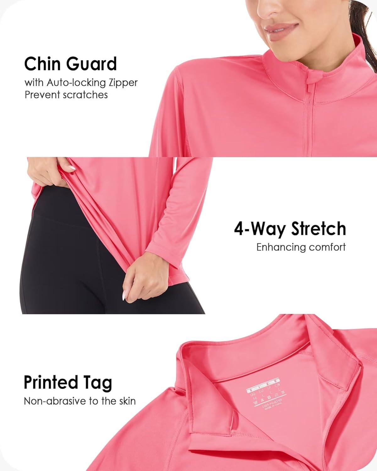 imageBoladeci Womens UPF 50 Sun Shirts 14 Zip Lightweight Long Sleeve Summer Tops UV Protection Quick Dry Golf ShirtsRose Red