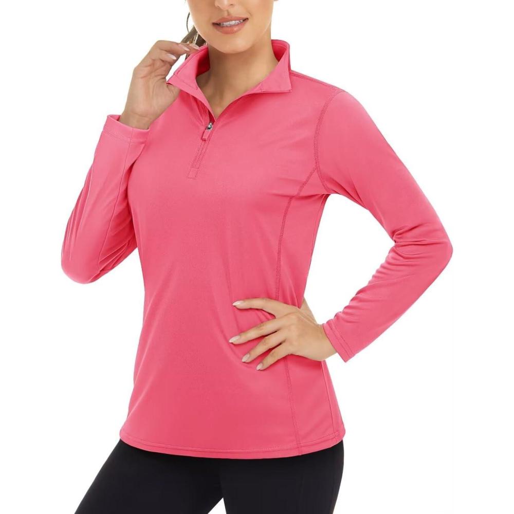 Boladeci Women’s UPF 50+ Sun Shirts 1/4 Zip Lightweight Long Sleeve Summer Tops UV Protection Quick Dry Golf Shirts(Rose Red)