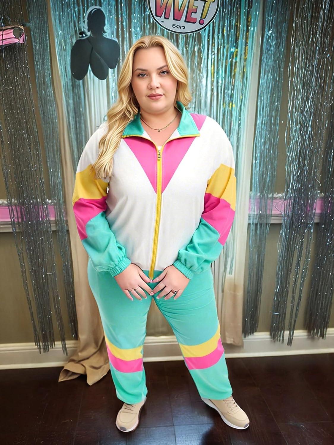 UOUA Plus Size 80s Outfit for Women 90s Costume Long Sleeves Windbreaker 2 Piece Party Tracksuit(Pink)