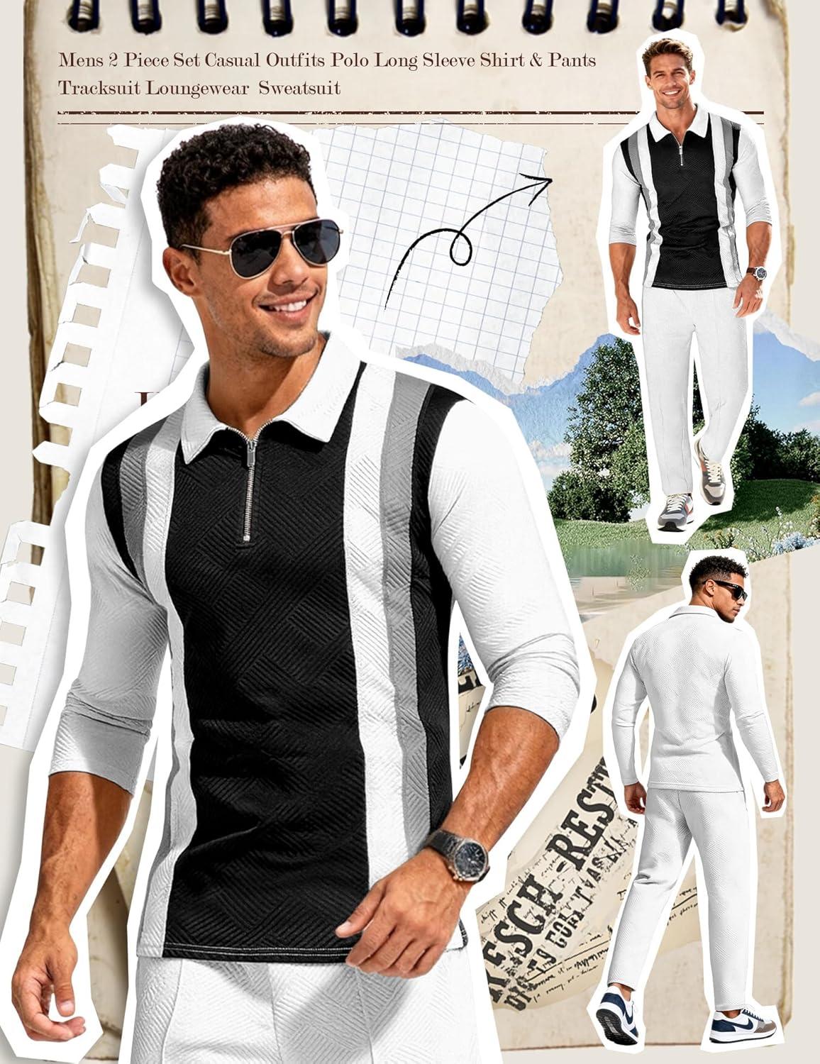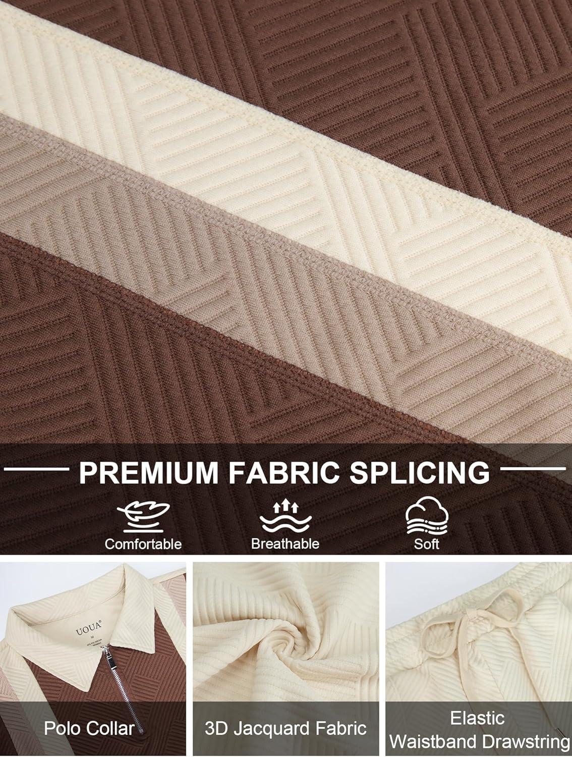 UOUA Mens 2 Piece Set Casual Outfits 1/4 Zip Polo Long Sleeve Shirt & Pants Track Suit Loungewear Athletic Sweatsuit(Bgw Blocking)