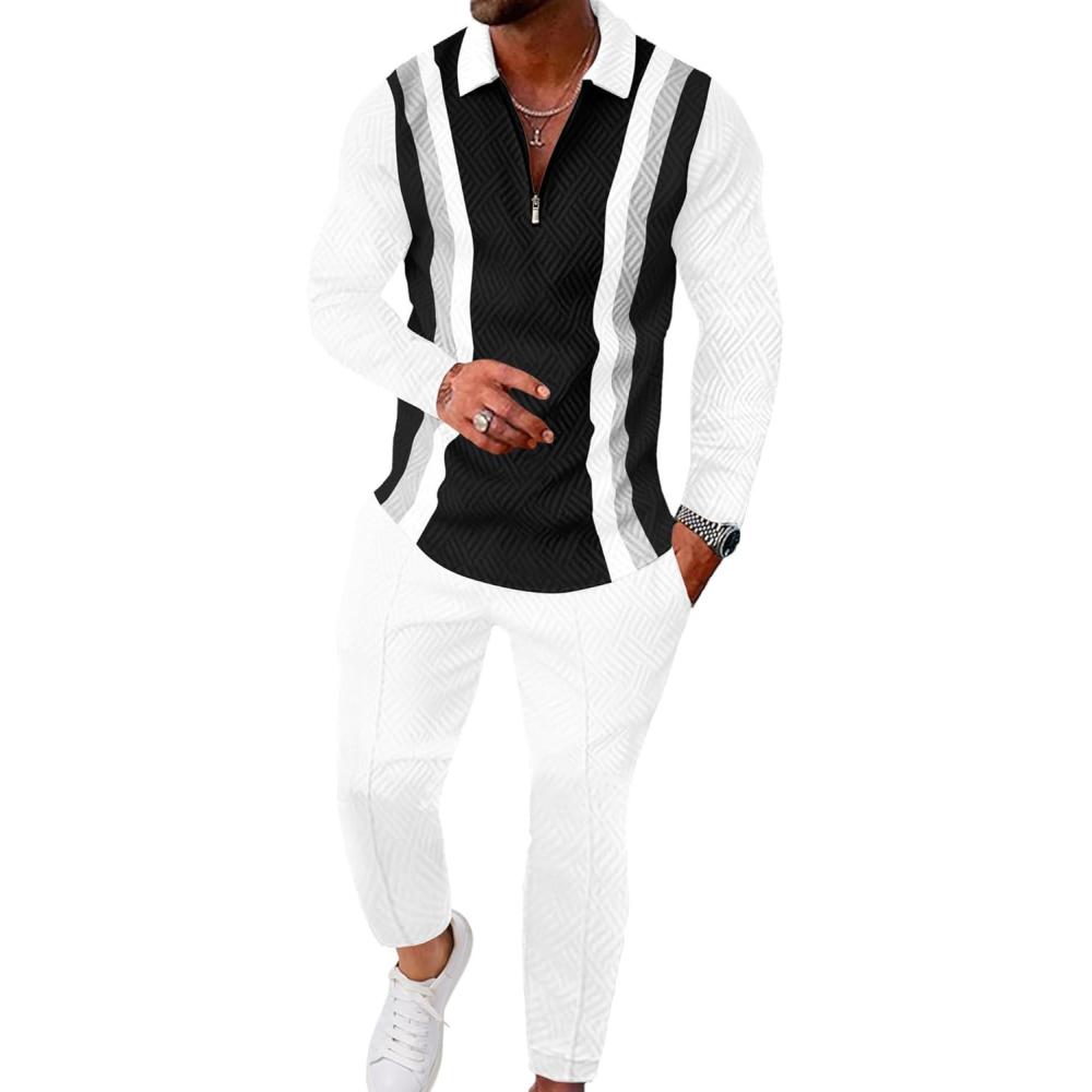 imageUOUA Mens 2 Piece Set Casual Outfits 14 Zip Polo Long Sleeve Shirt ampamp Pants Track Suit Loungewear Athletic SweatsuitBkb Blocking