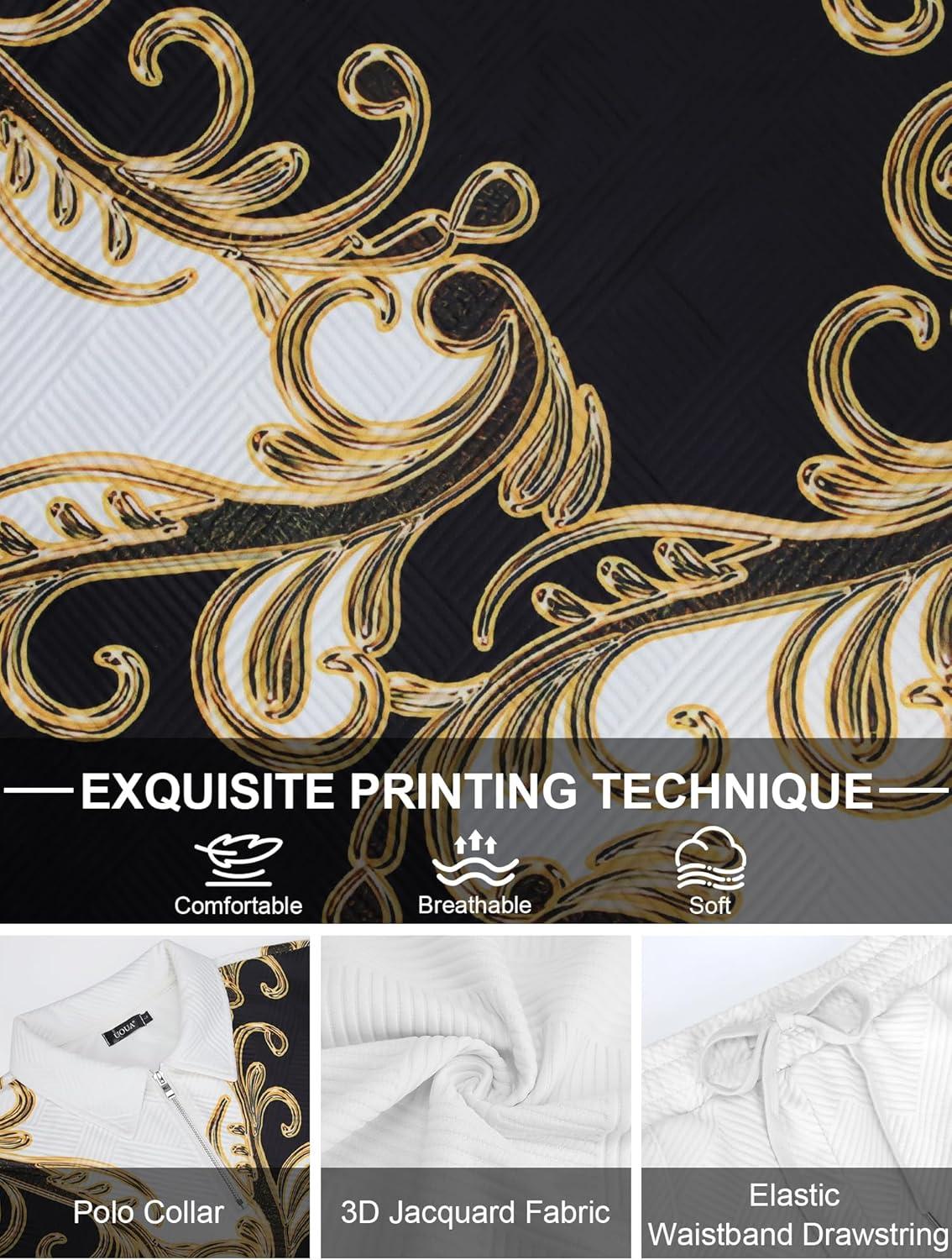 UOUA Mens 2 Piece Set Casual Outfits 1/4 Zip Polo Long Sleeve Shirt & Pants Track Suit Loungewear Athletic Sweatsuit(White Blue Block)