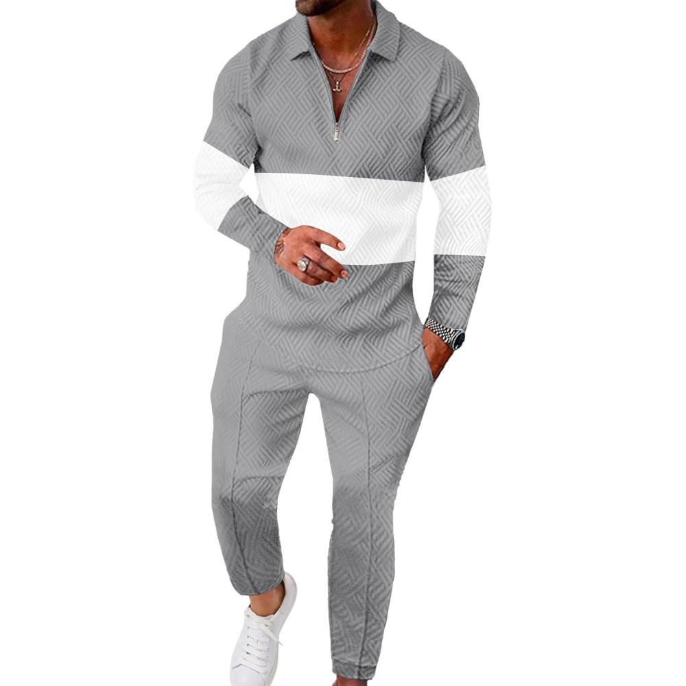 UOUA Mens 2 Piece Set Casual Outfits 1/4 Zip Polo Long Sleeve Shirt & Pants Track Suit Loungewear Athletic Sweatsuit(Grey)