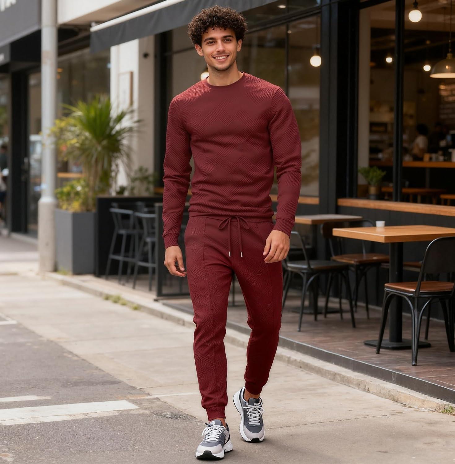 UOUA Men’s 2 Piece Sweat Suits Set Long Sleeve Sweatshirt Jogging Sweatpants Tracksuits Outfits(Wine Red)