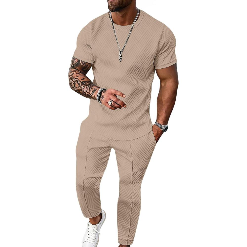 UOUA Mens 2 Piece Sweatsuit Set Short Sleeve Sweatshirt Jogging Sweatpants Tracksuits Outfits(Khaki)