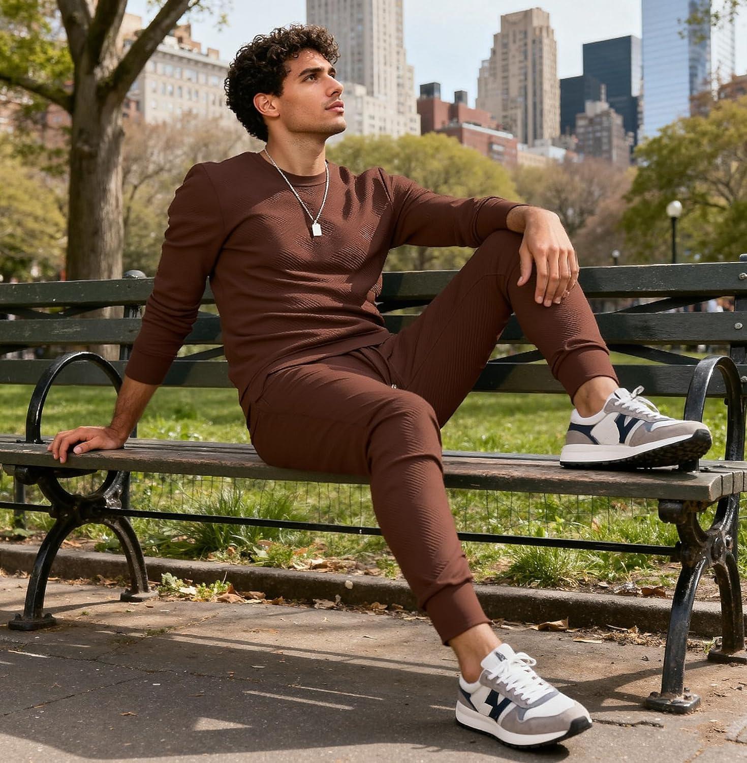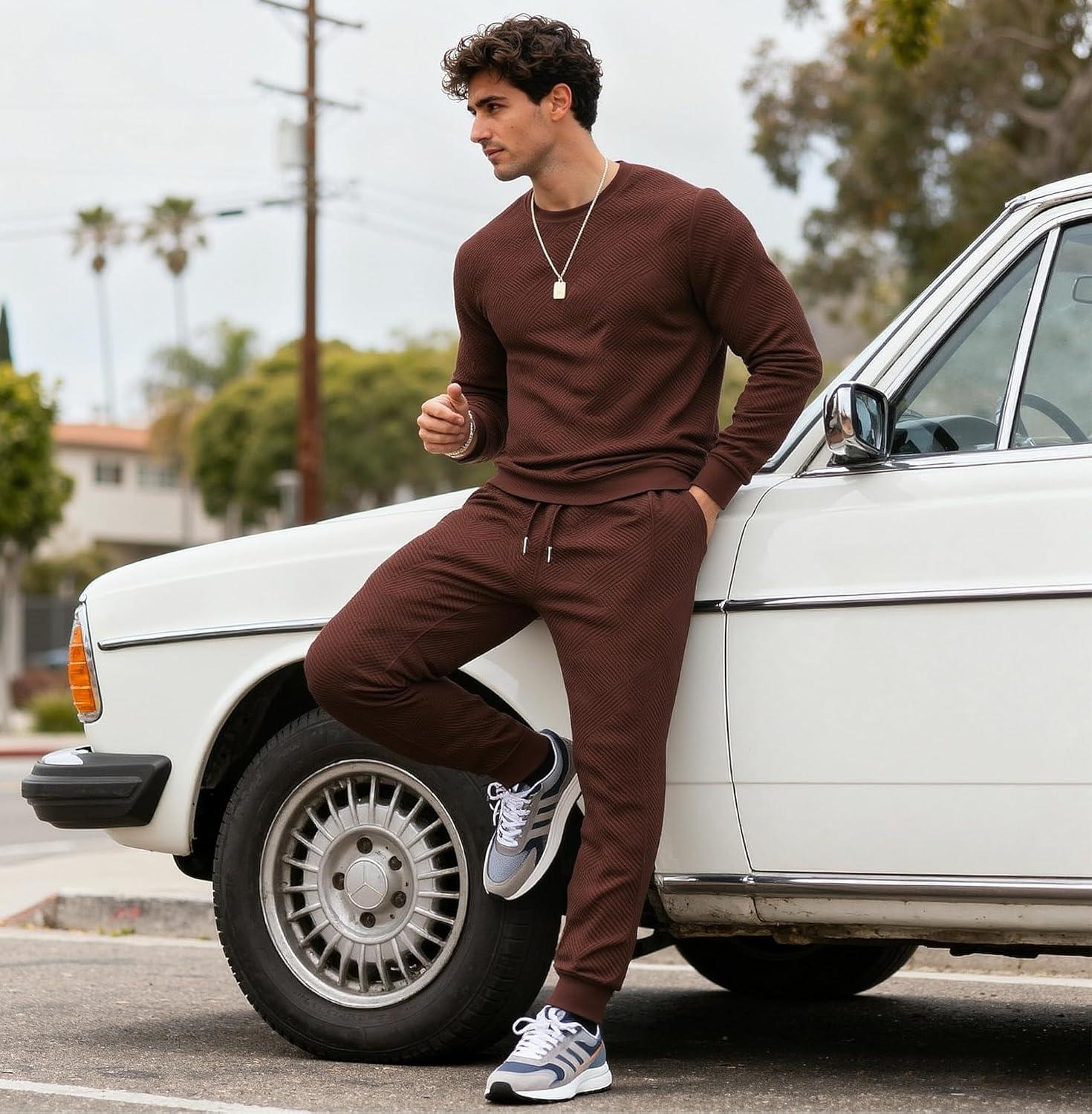 UOUA Mens 2 Piece Sweatsuits Set Long Sleeve Sweatshirt Jogging Sweatpants Tracksuits Outfits(Brown)