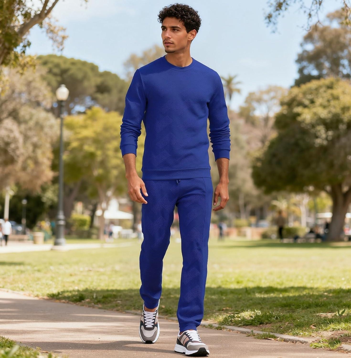 UOUA Mens 2 Piece Sweatsuits Set Long Sleeve Sweatshirt Jogging Sweatpants Tracksuits Outfits(Royal Blue)