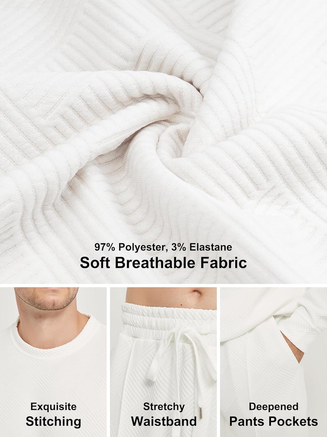 UOUA Mens 2 Piece Sweatsuits Set Long Sleeve Sweatshirt Jogging Sweatpants Tracksuits Outfits(White)