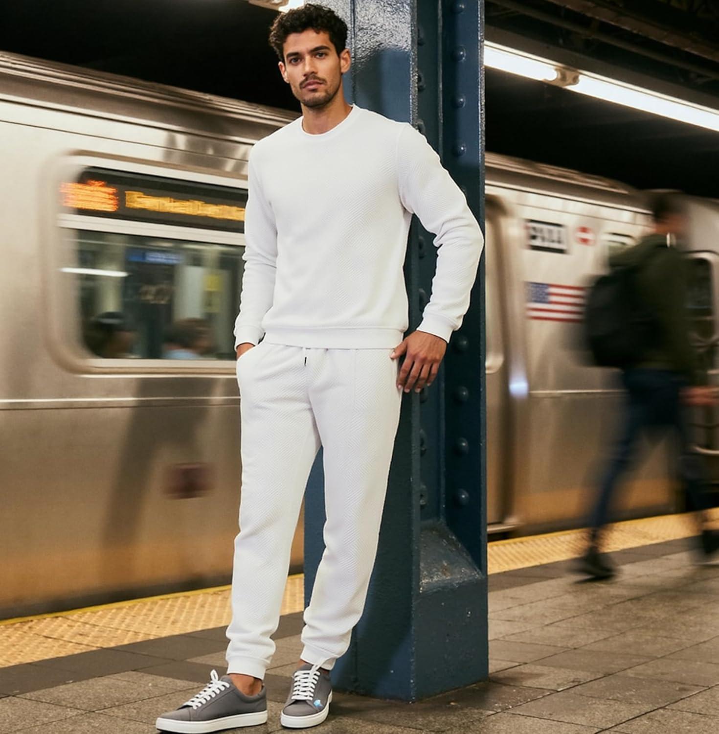 UOUA Mens 2 Piece Sweatsuits Set Long Sleeve Sweatshirt Jogging Sweatpants Tracksuits Outfits(White)