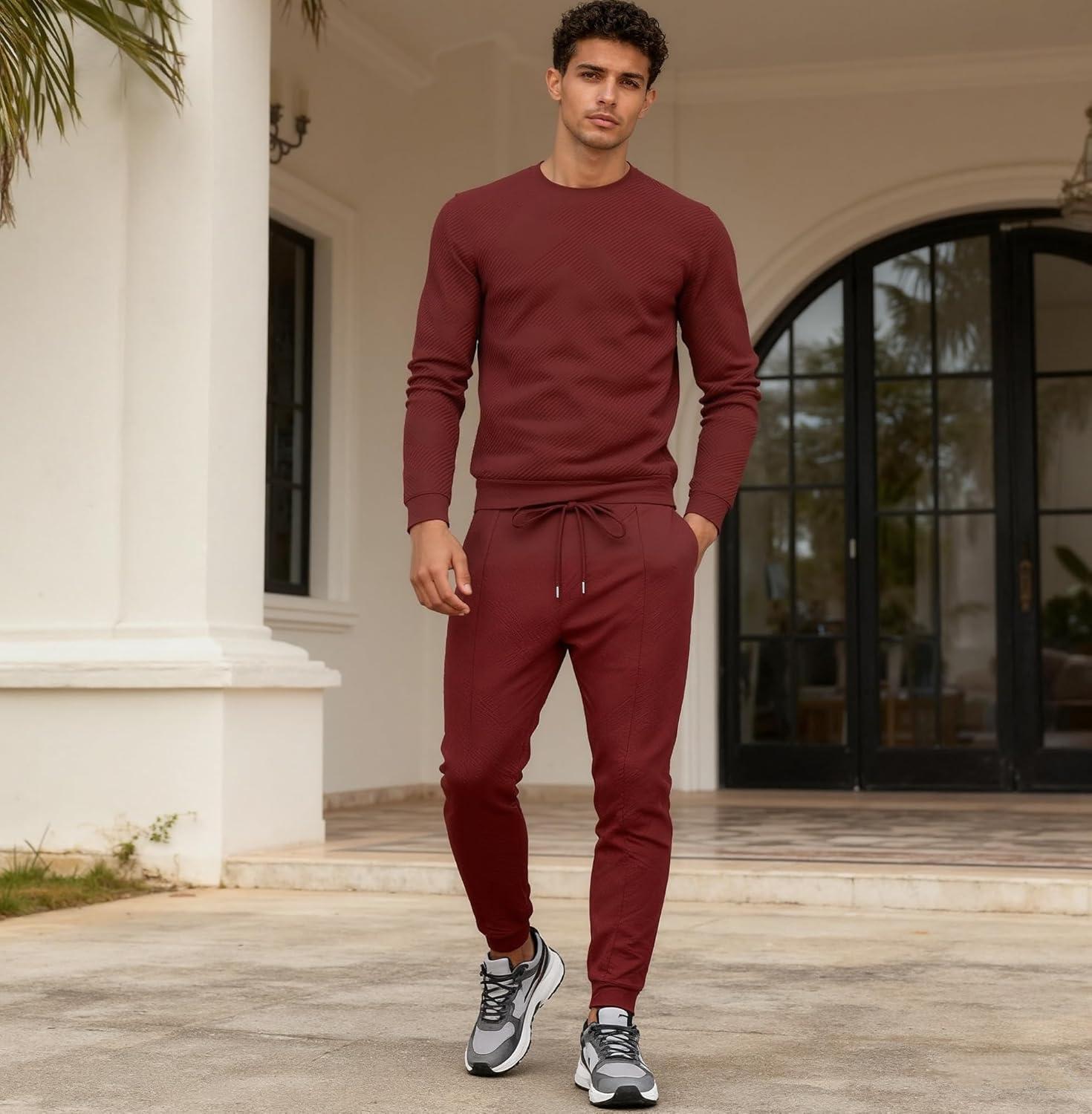 UOUA Mens 2 Piece Sweatsuits Set Long Sleeve Sweatshirt Jogging Sweatpants Tracksuits Outfits(Wine Red)