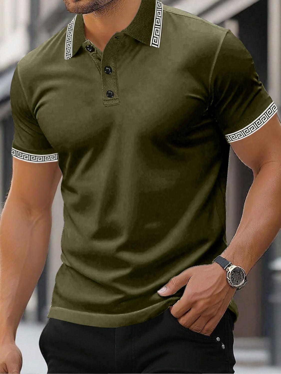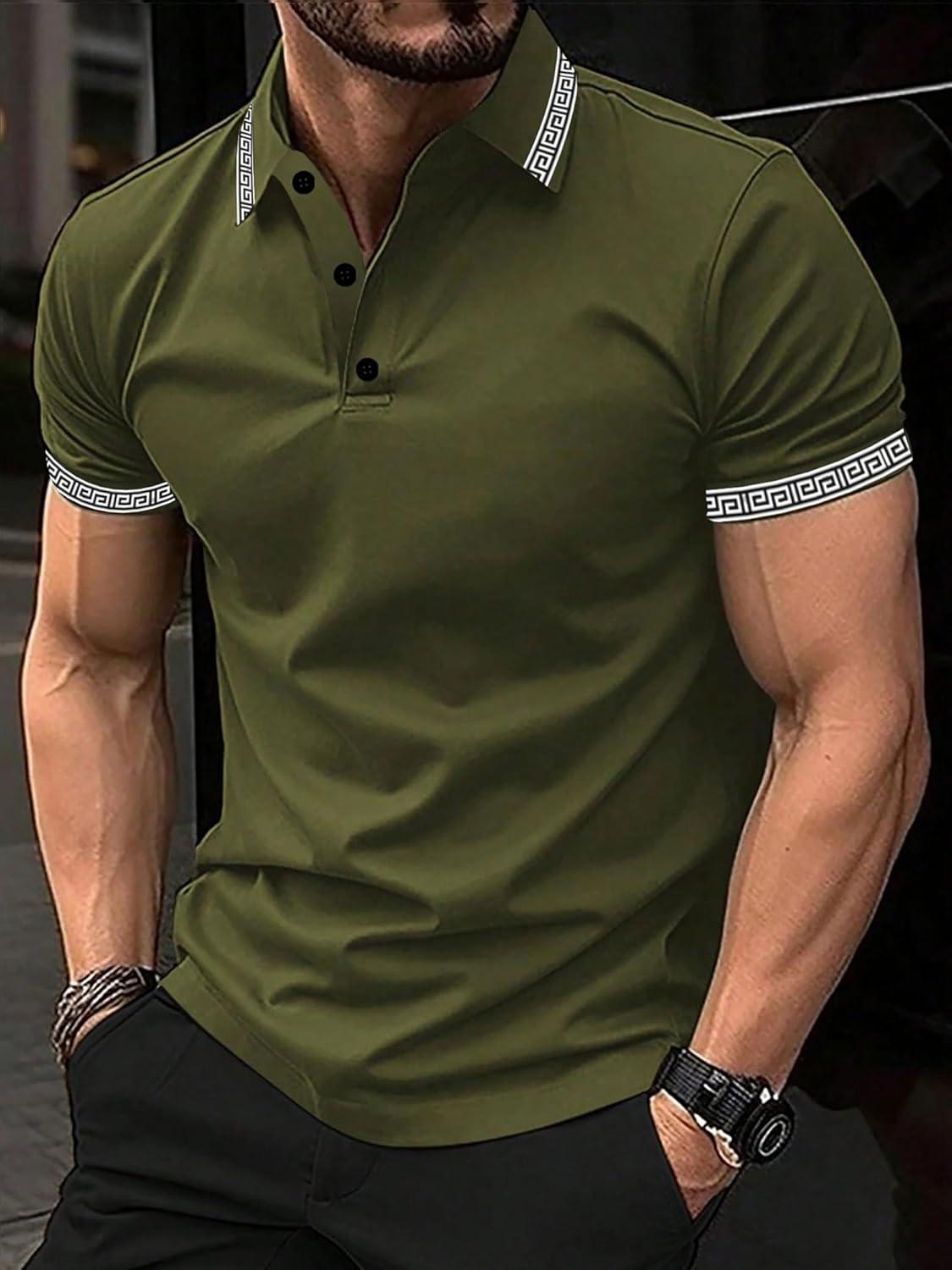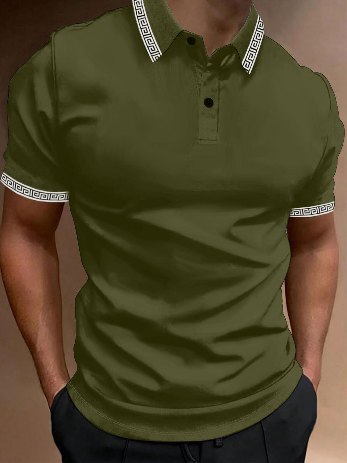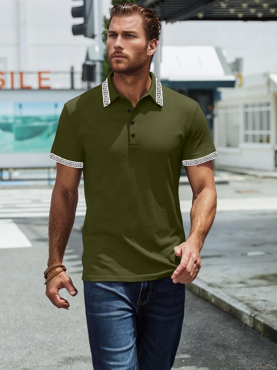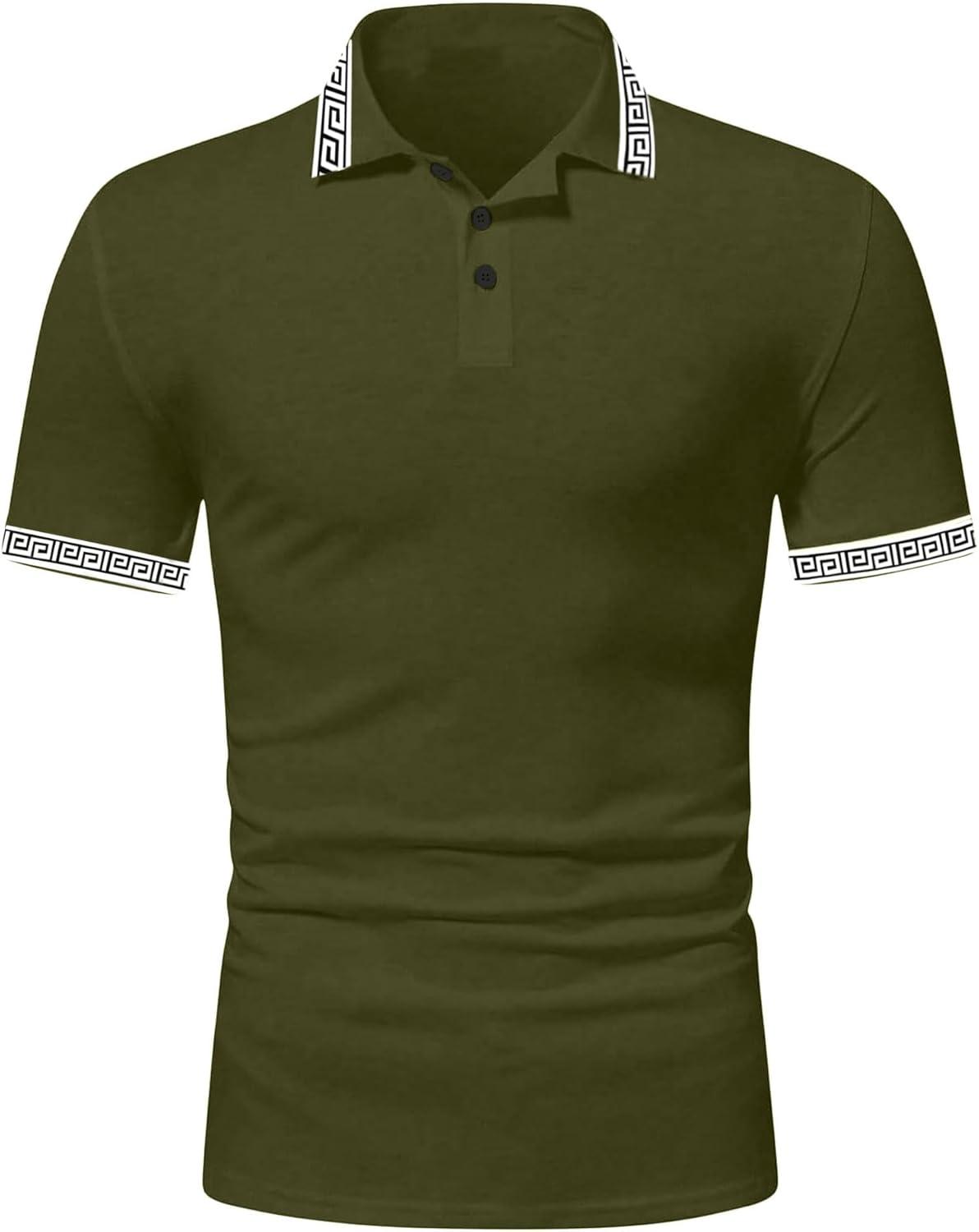 UOUA Mens Casual Polo Shirts Classic Short Sleeve Collared T Shirt Button Golf Slim Fit Tee Tops(01 Army Green)