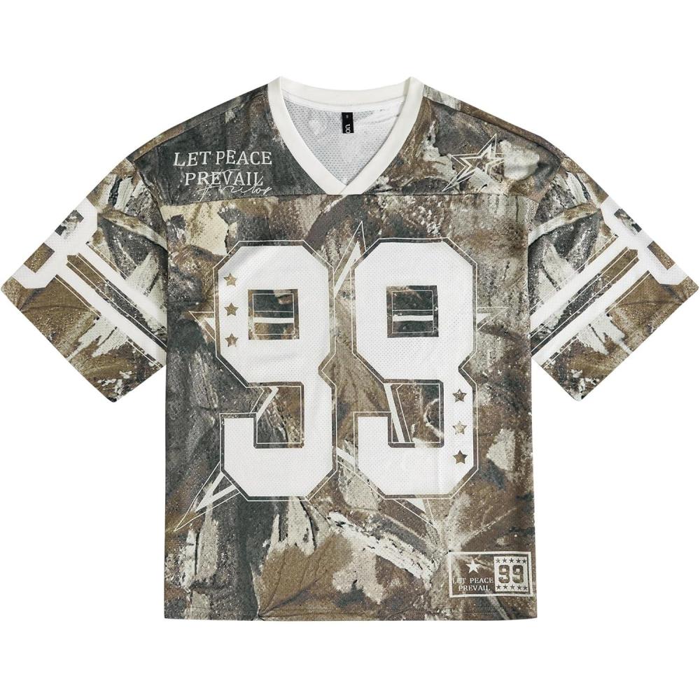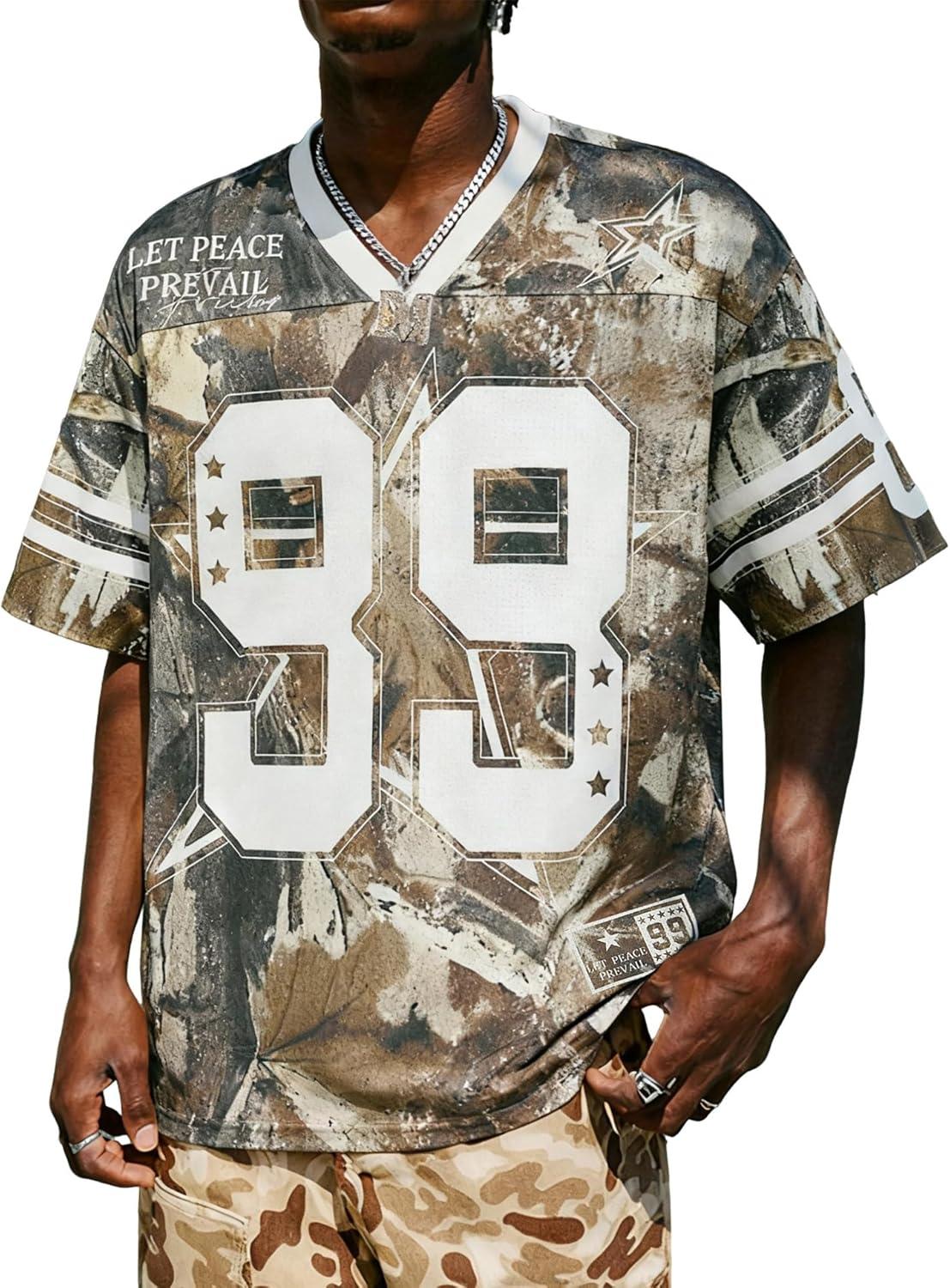 UOUA Mens Jersey Y2k Baggy Shirts Number Graphic Tees Oversized V Neck Tshirts Streetwear Tops(Brown-leaves)
