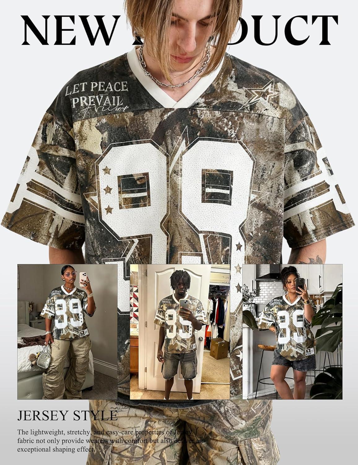 UOUA Mens Jersey Y2k Baggy Shirts Number Graphic Tees Oversized V Neck Tshirts Streetwear Tops(Grey-leaves)