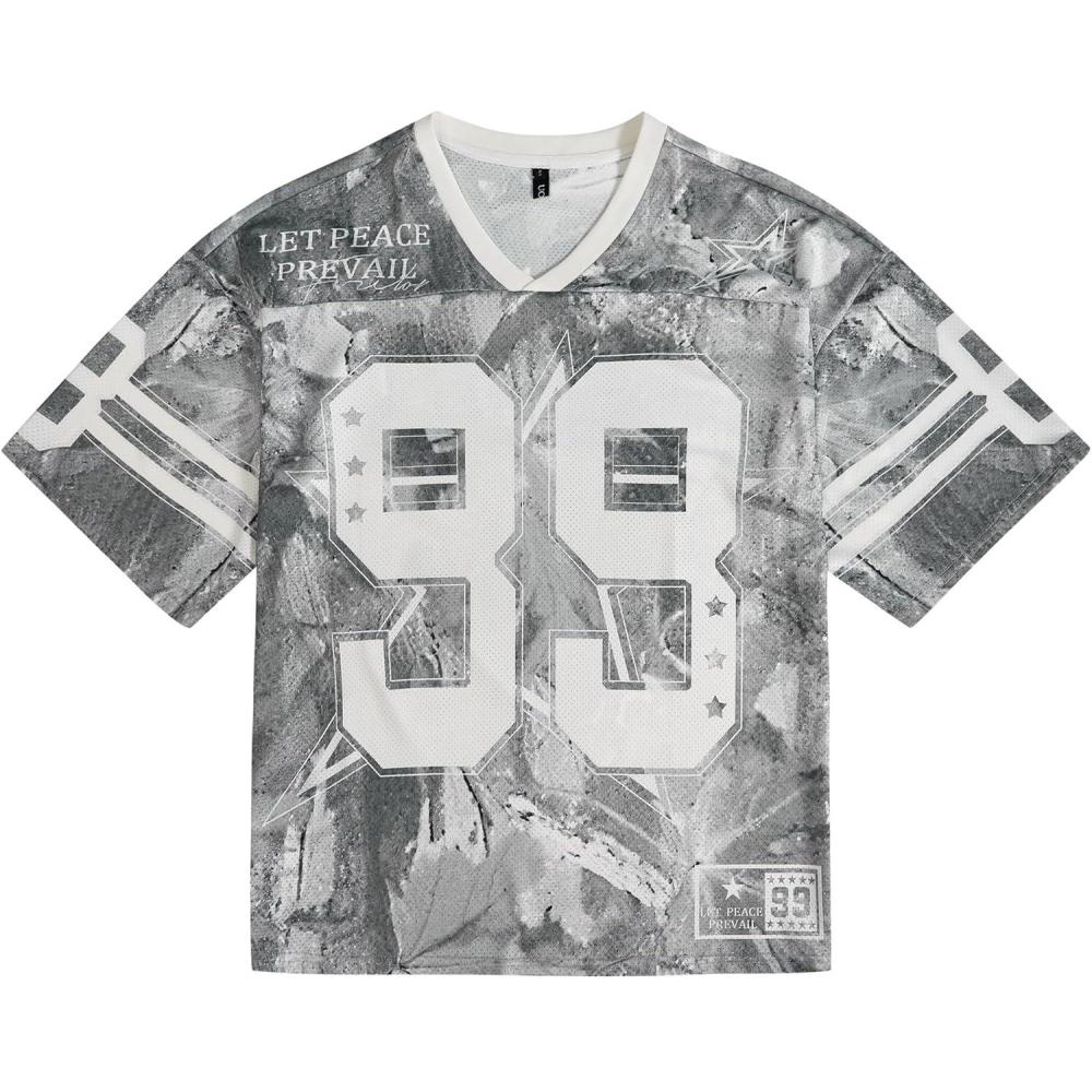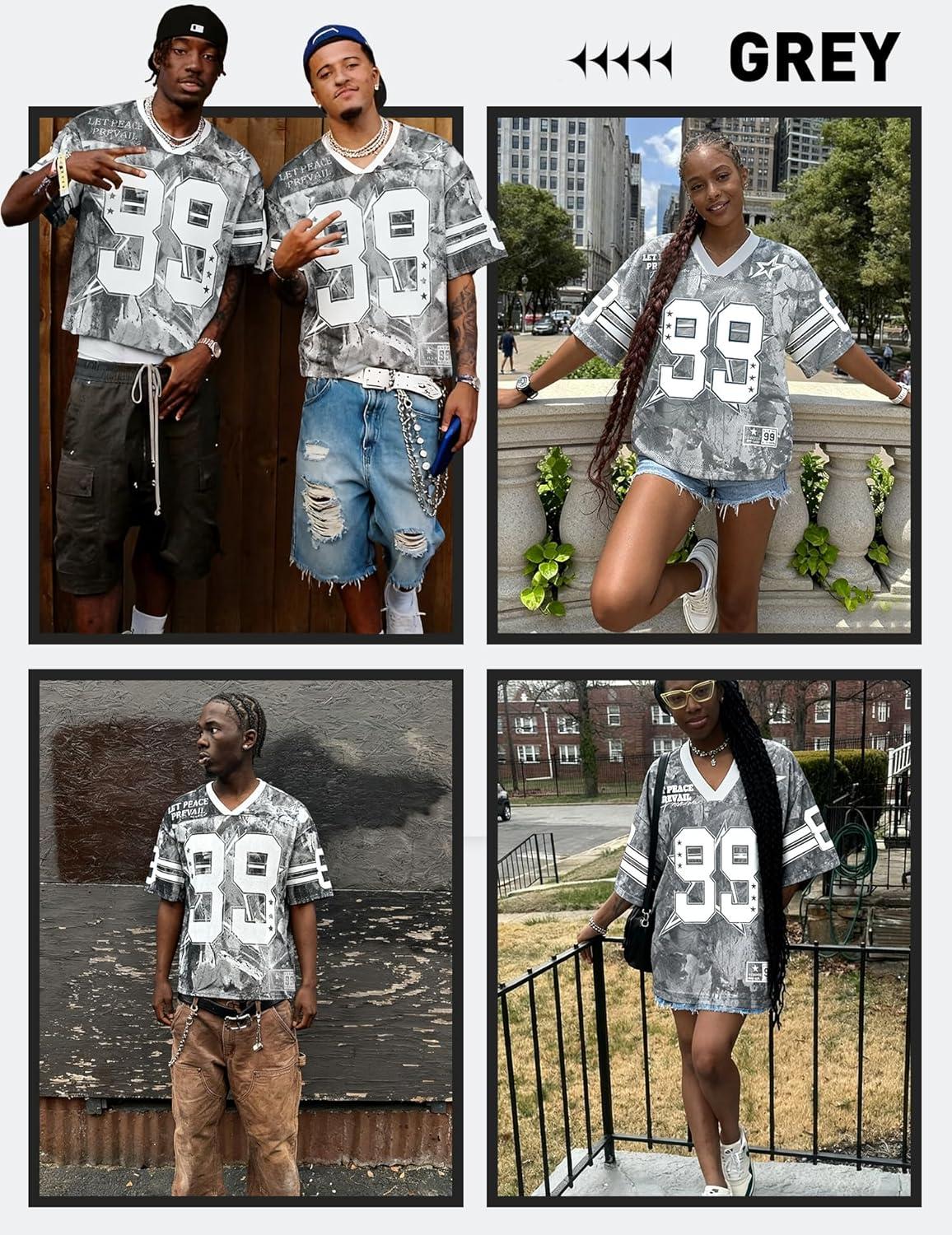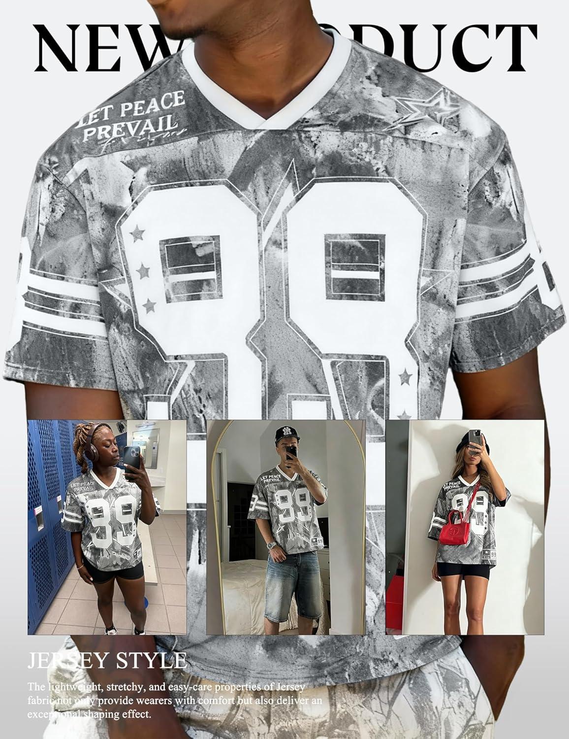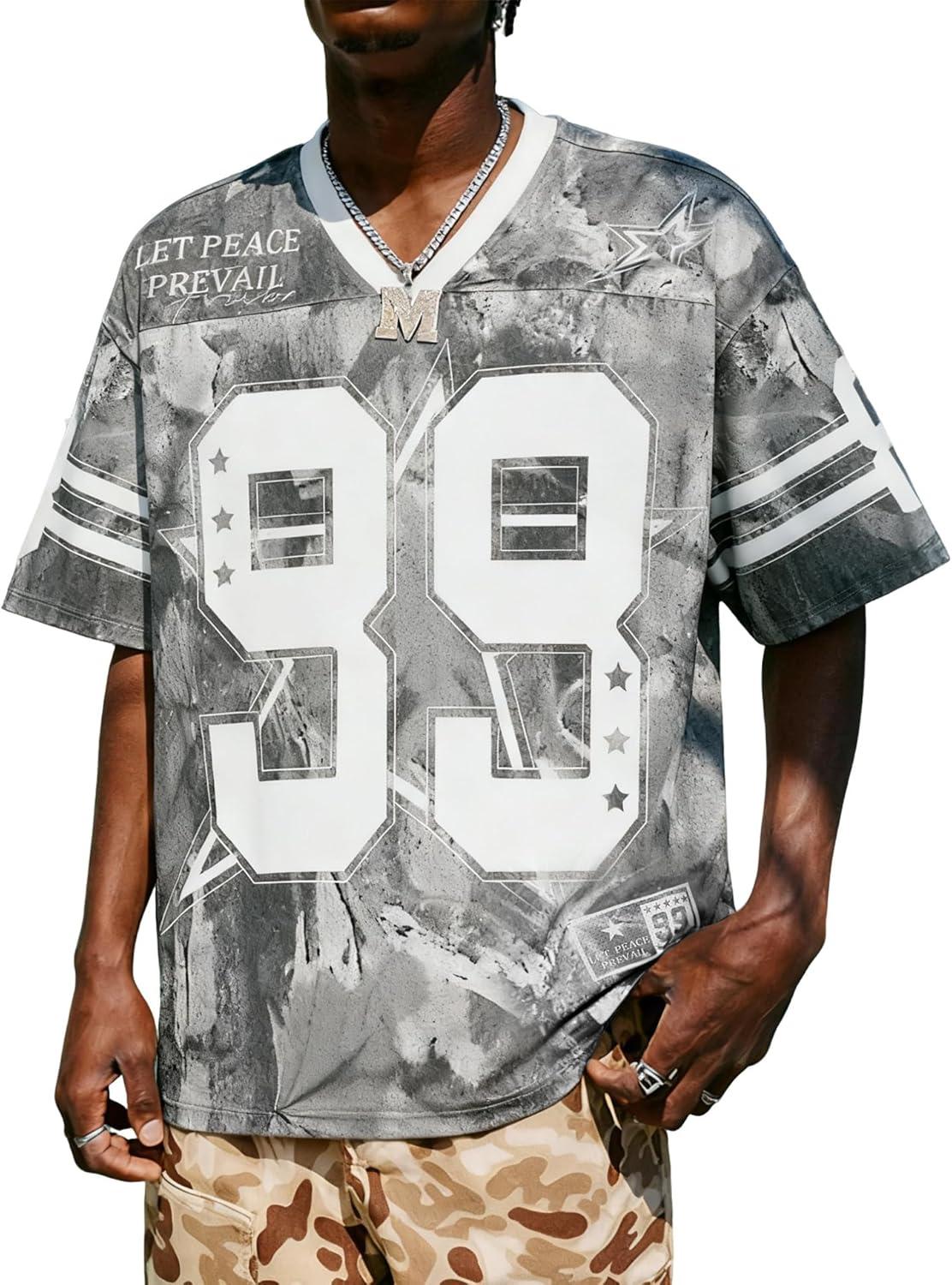 UOUA Mens Jersey Y2k Baggy Shirts Number Graphic Tees Oversized V Neck Tshirts Streetwear Tops(Grey-leaves)