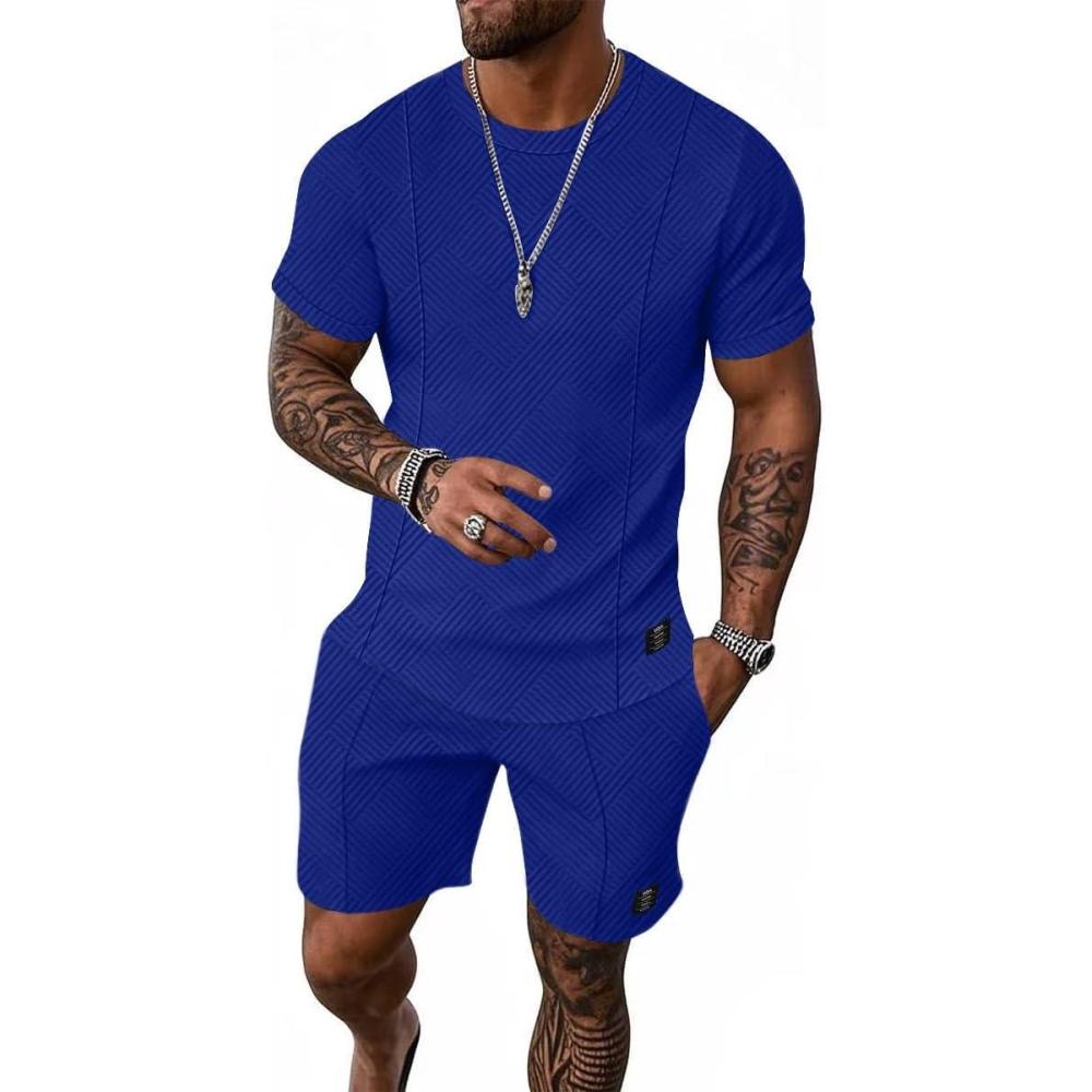 UOUA Mens Short Sets Summer 2 Piece Outfits Casual Short Sleeve Jogging Tracksuits(Blue)