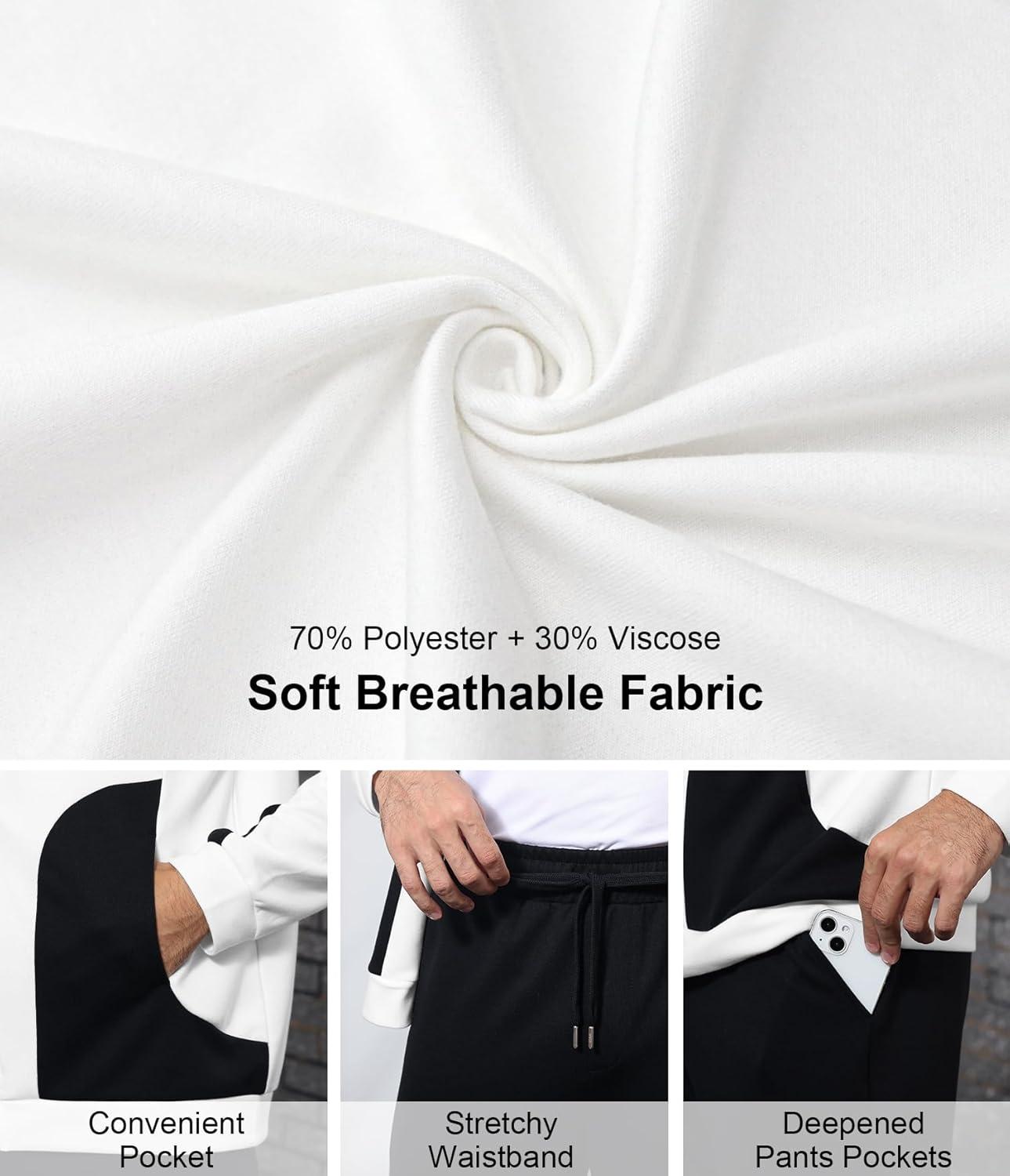 UOUA Mens Tracksuit 2 Piece Hoodie & Sweatpants Set Waffle Jacquard Sweatsuit Outfits Casual Jogging Suits(White)