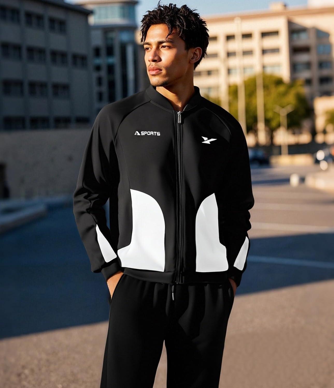 UOUA Mens Tracksuits 2 Piece Set Long Sleeve Sweatsuit Outfits Workout Jogging Suits(Black)