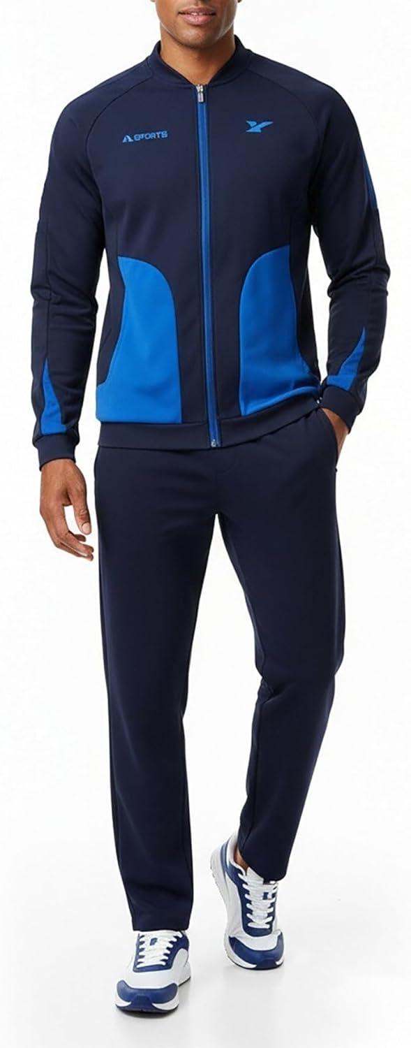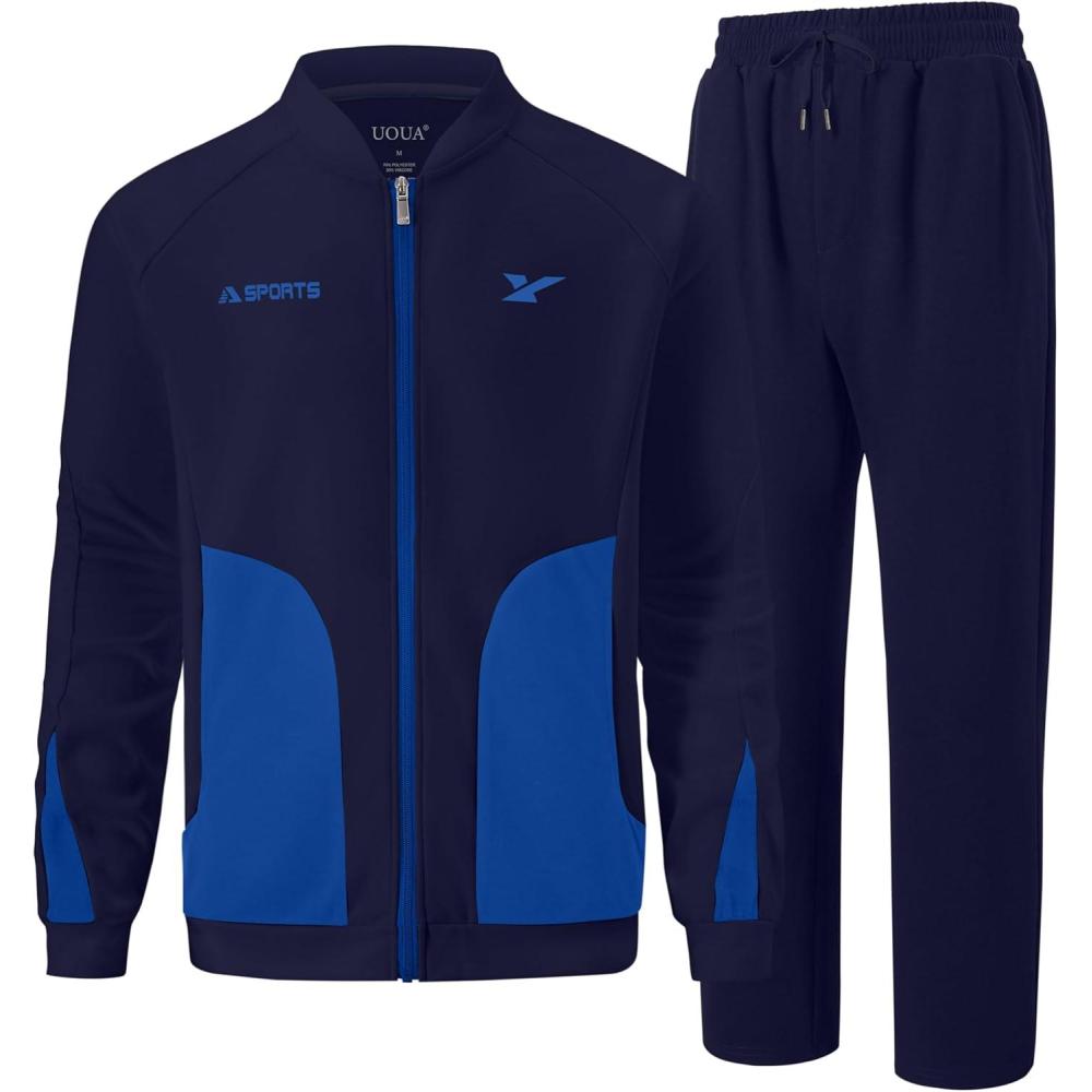 UOUA Mens Tracksuits 2 Piece Set Long Sleeve Sweatsuit Outfits Workout Jogging Suits(Navy Blue)