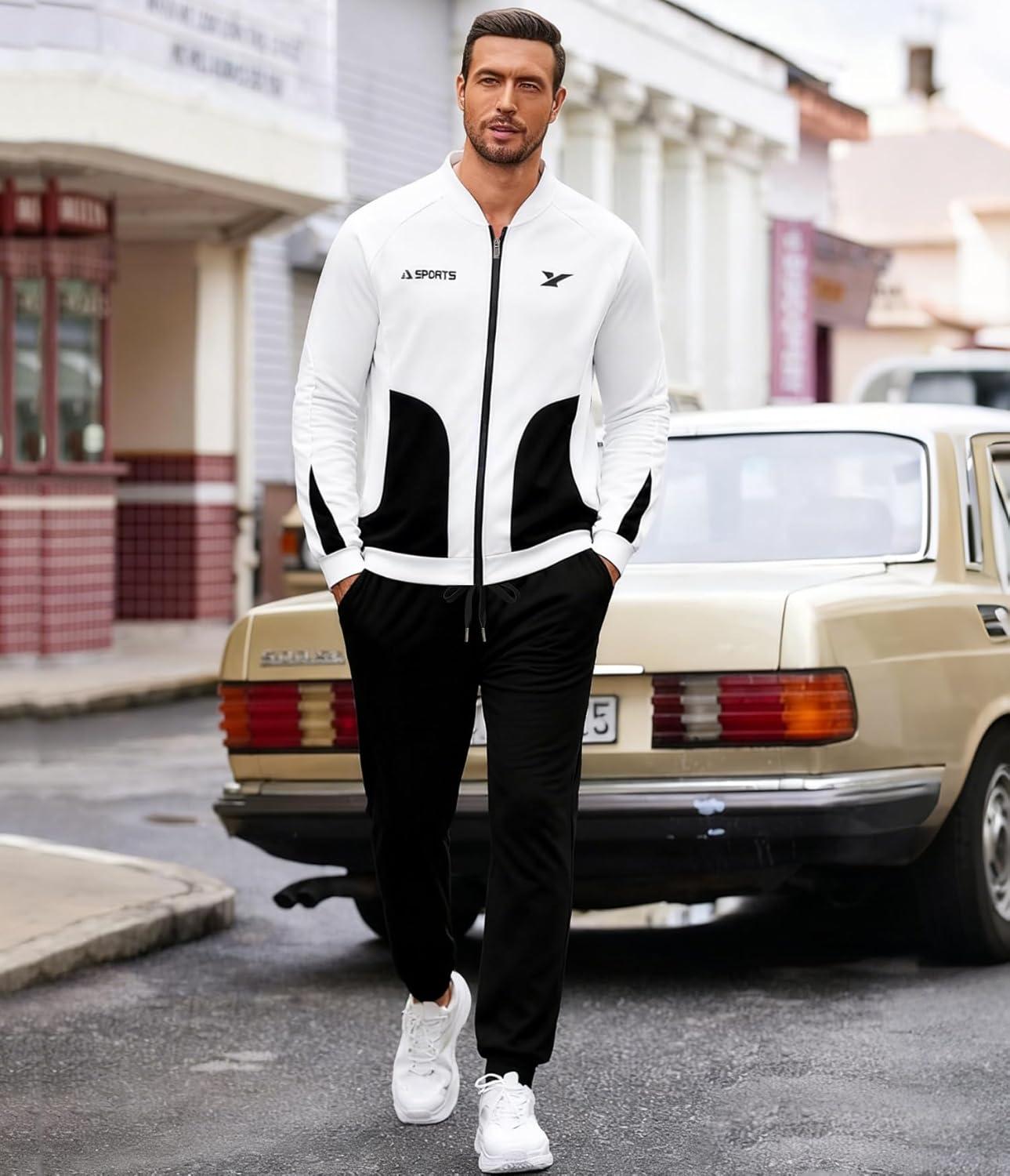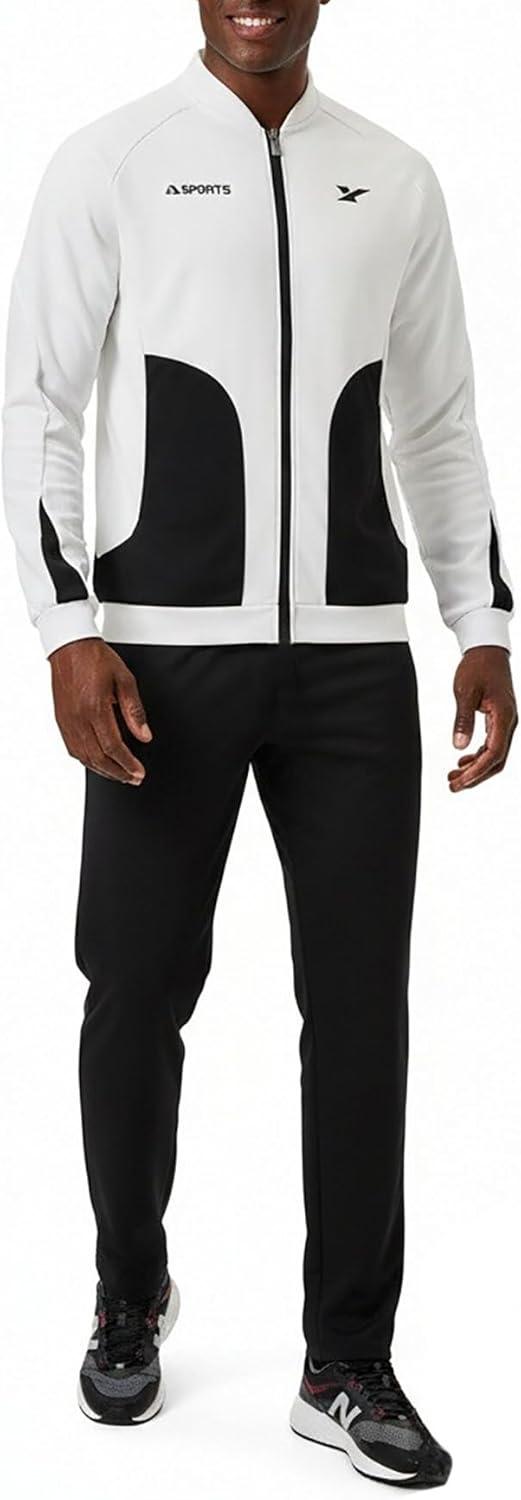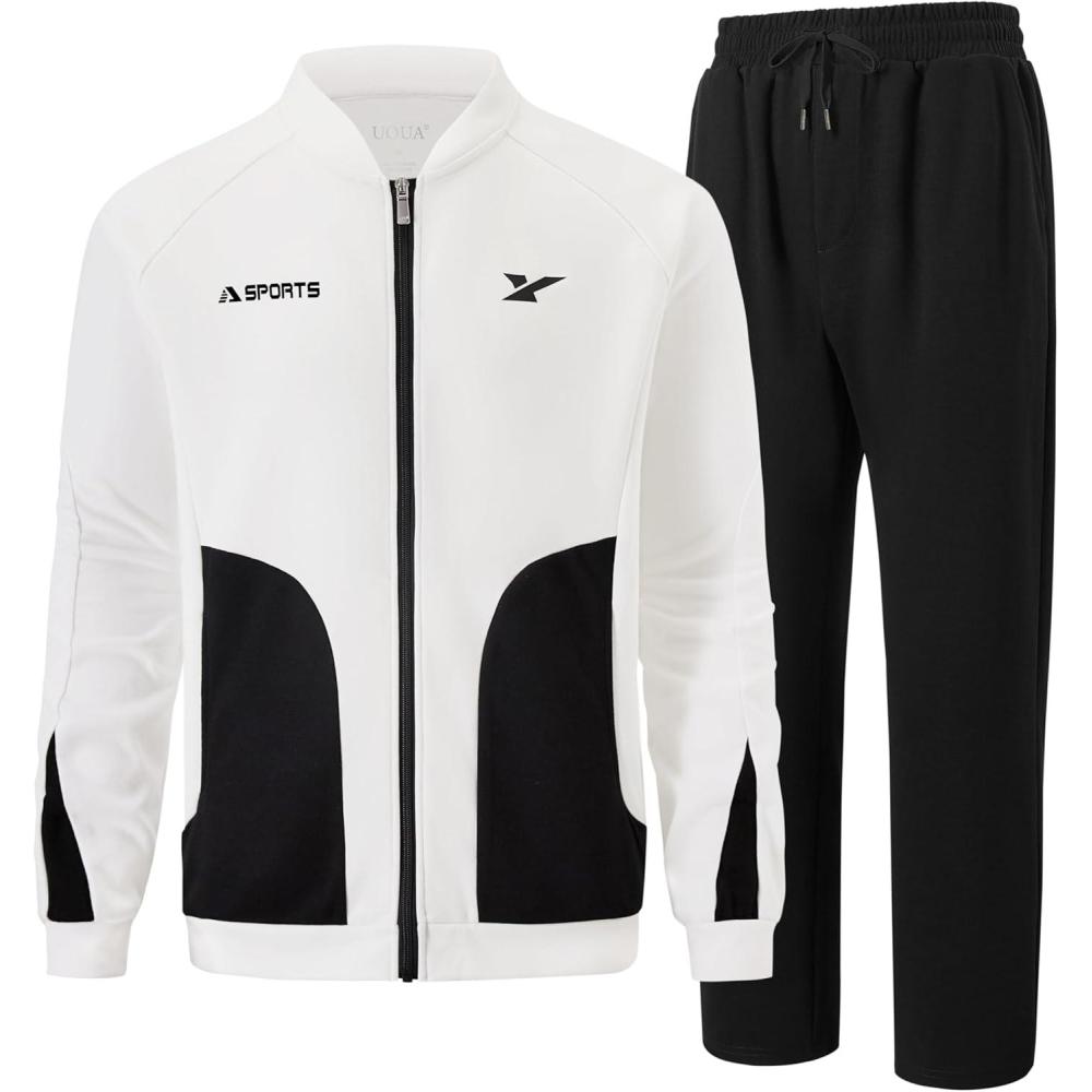UOUA Mens Tracksuits 2 Piece Set Long Sleeve Sweatsuit Outfits Workout Jogging Suits(White & Black)