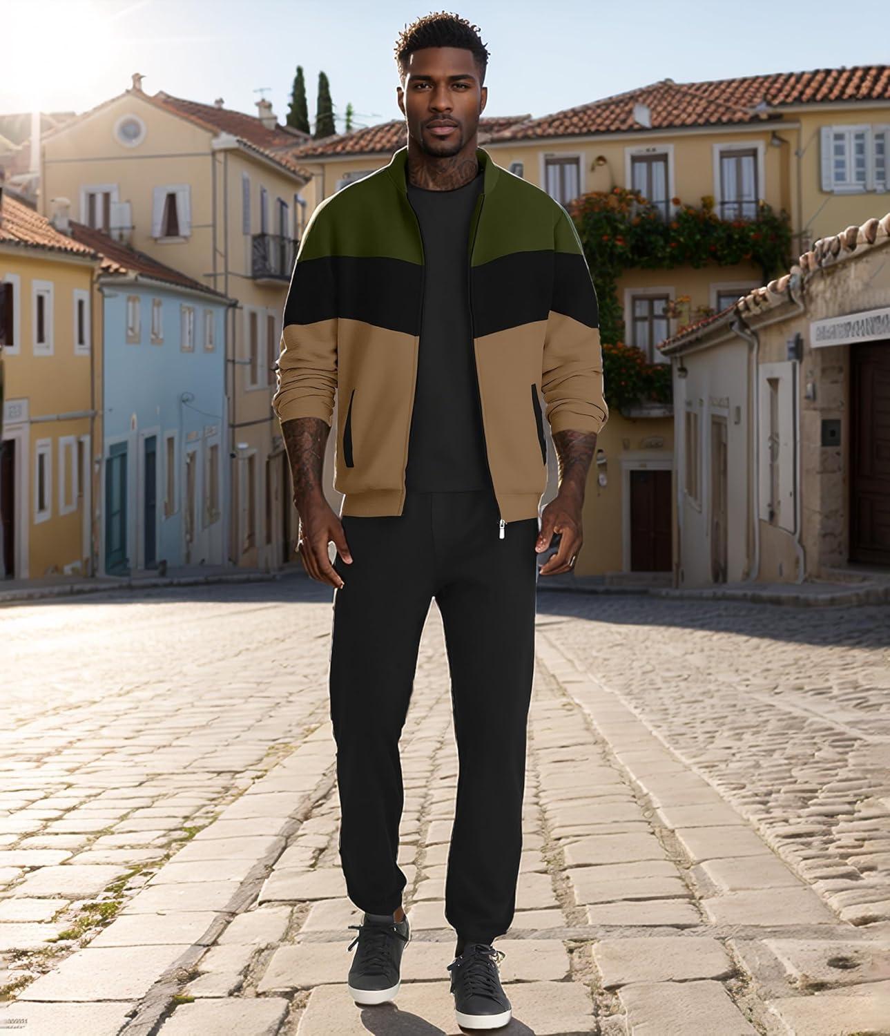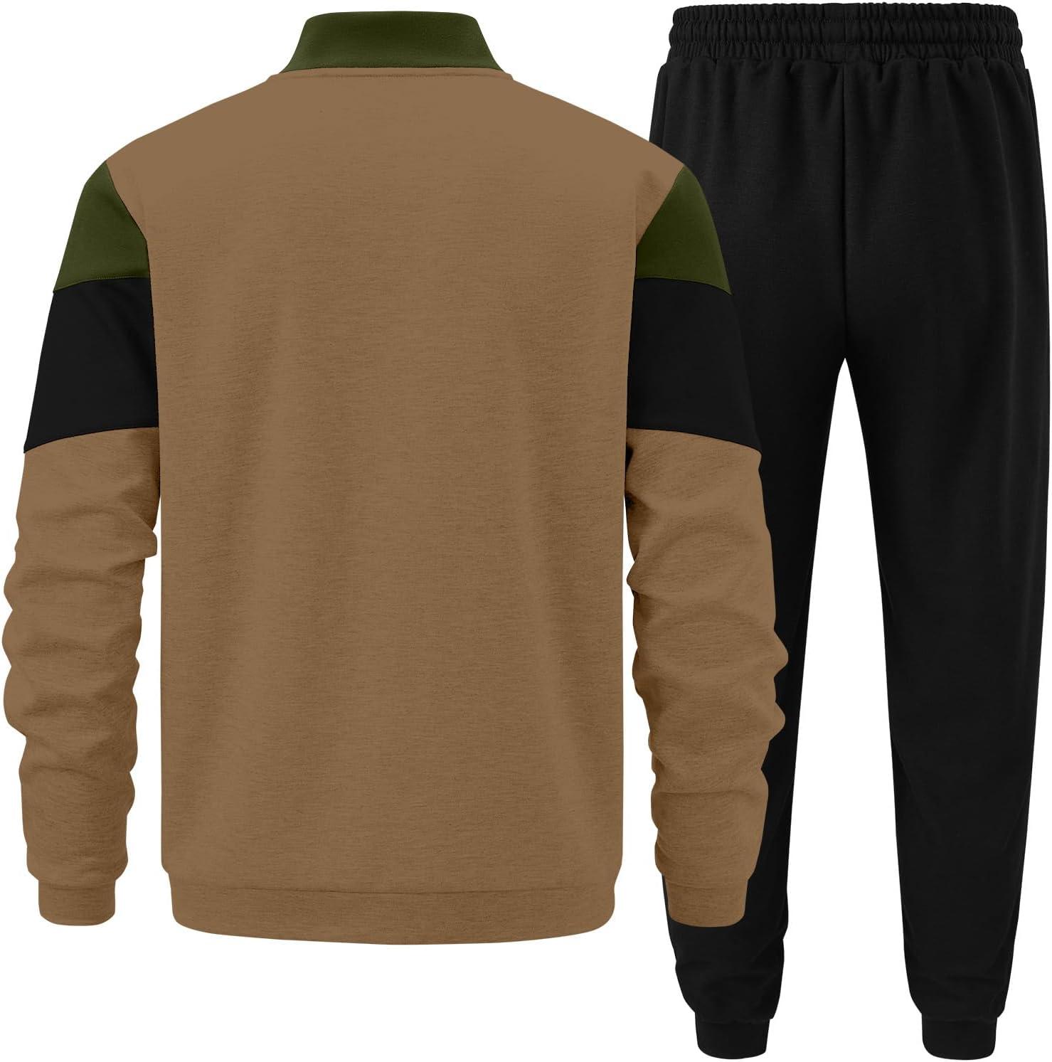 UOUA Men’s Tracksuits Set Full Zip Jacket & Sweatpants 2 Piece Athletic Jogging Suits Casual Sports Color Block Outfit(Khaki)