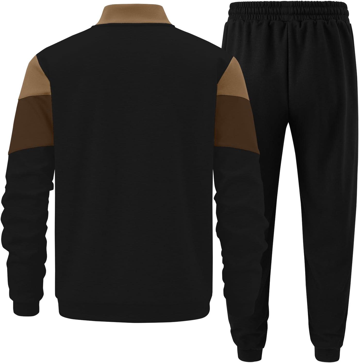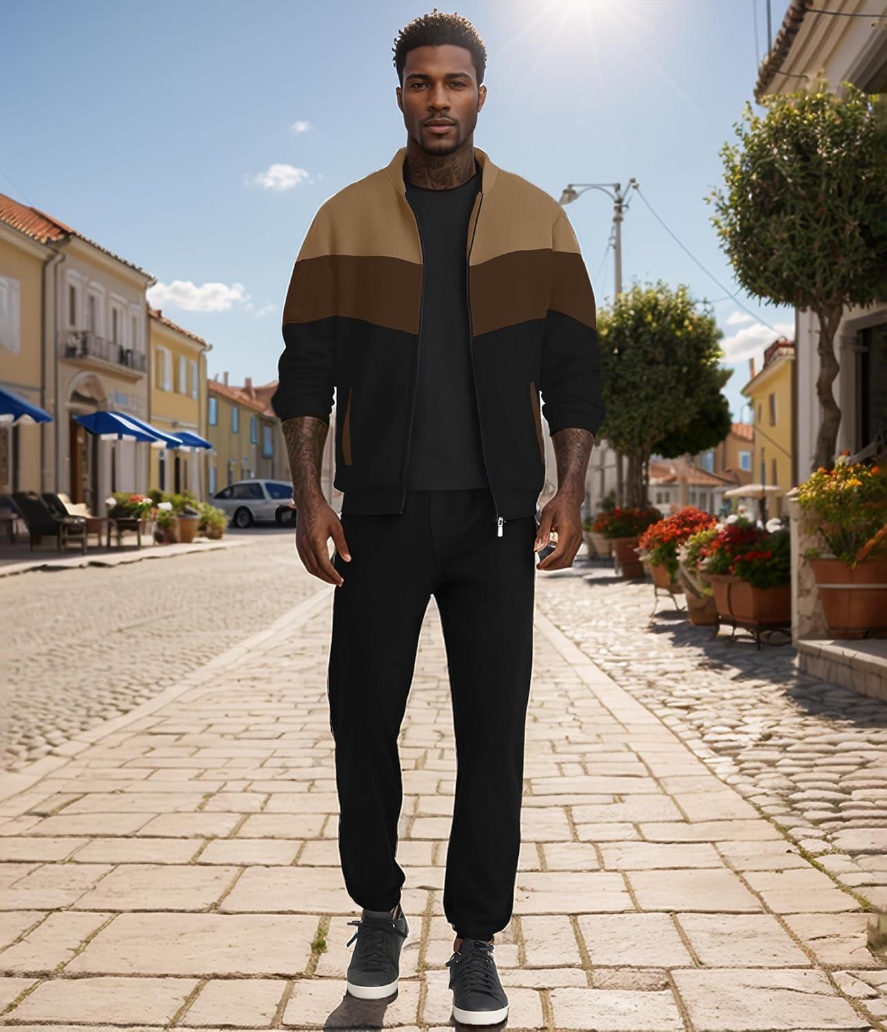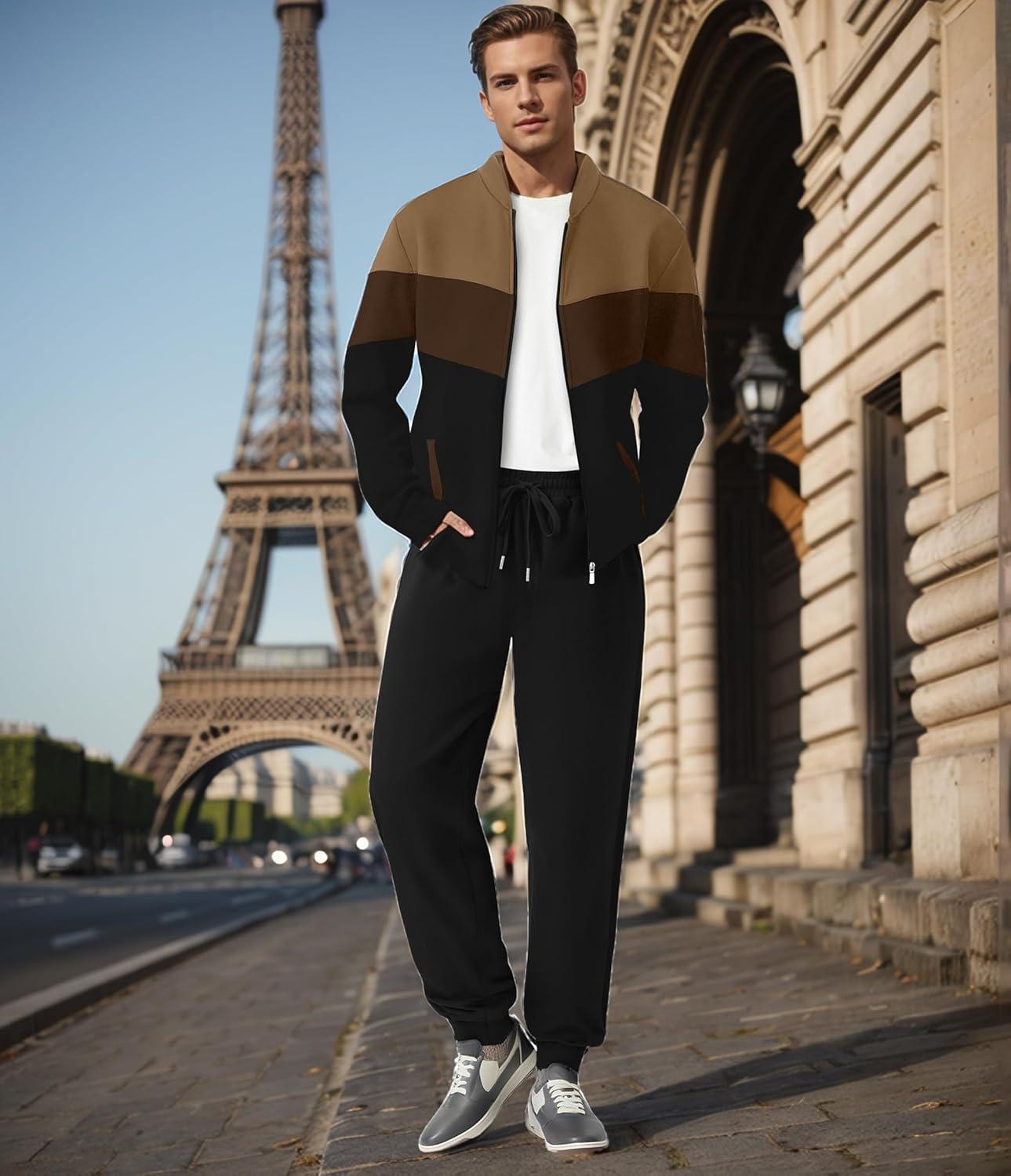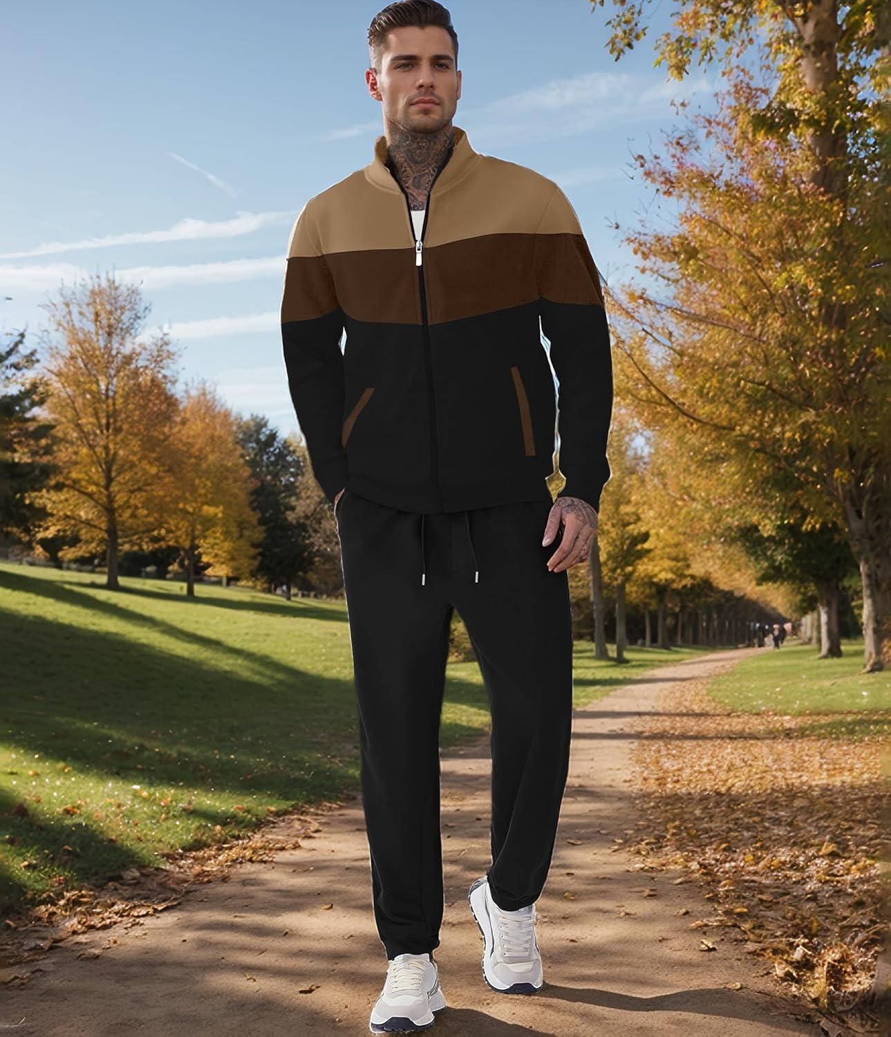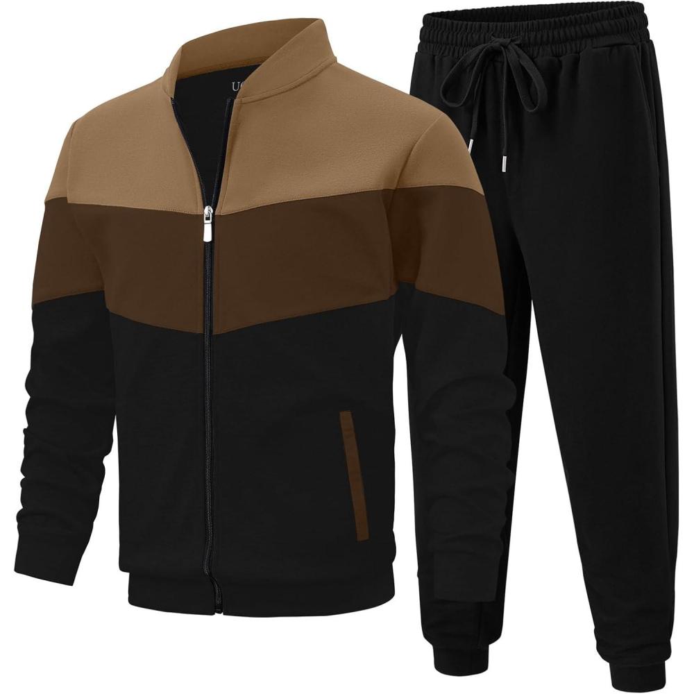UOUA Men's Tracksuits Set Full Zip Jacket & Sweatpants 2 Piece Athletic Jogging Suits Casual Sports Color Block Outfit(Khaki)