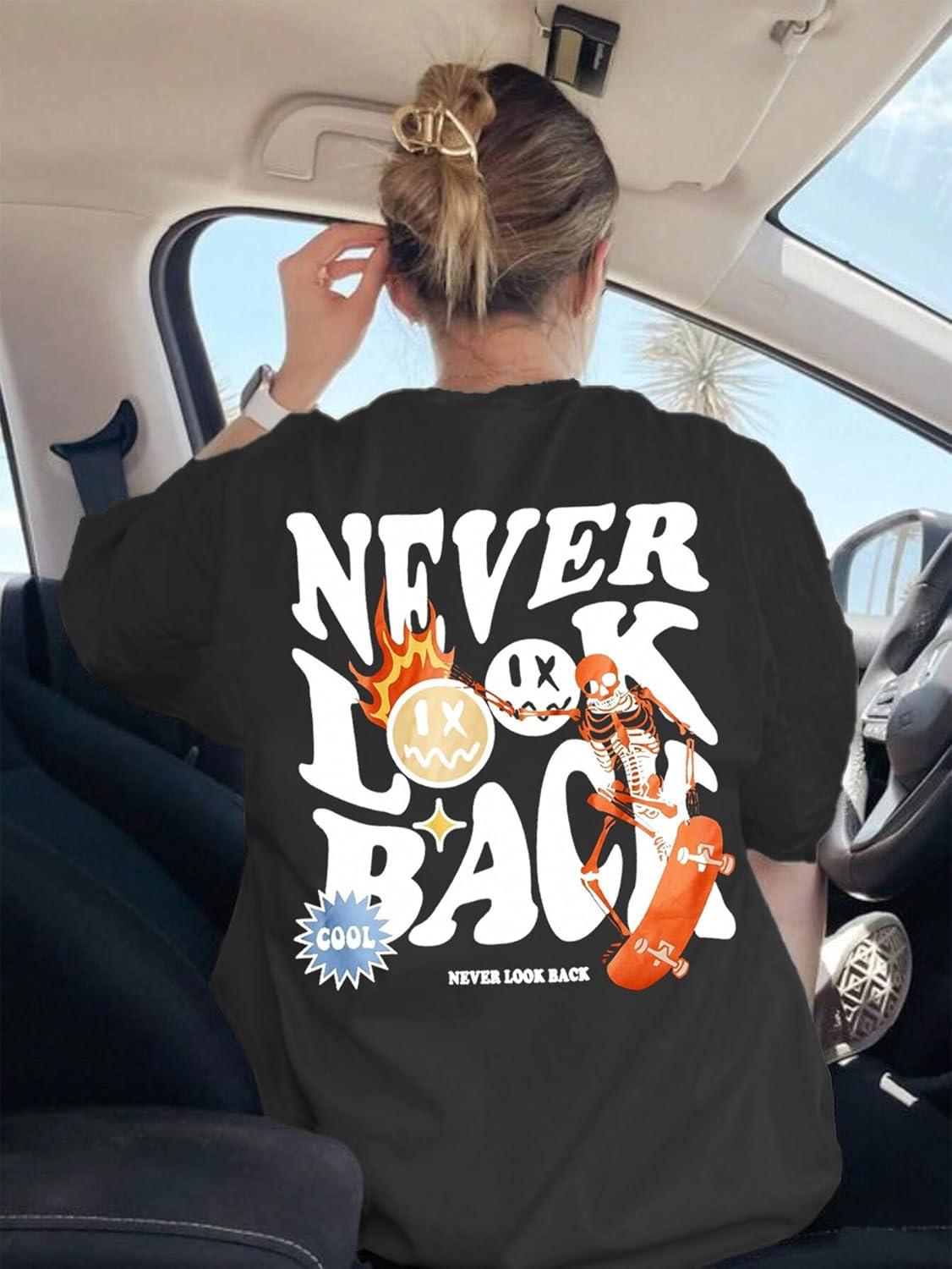 UOUA Women Oversized Graphic T-Shirt Casual Cotton Tees Printed Summer Tops(Skull-black)