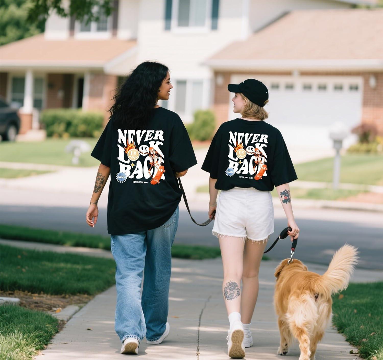 UOUA Women Oversized Graphic T-Shirt Casual Cotton Tees Printed Summer Tops(Sloganletter-black)