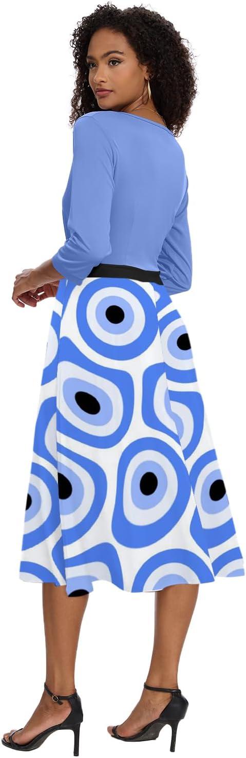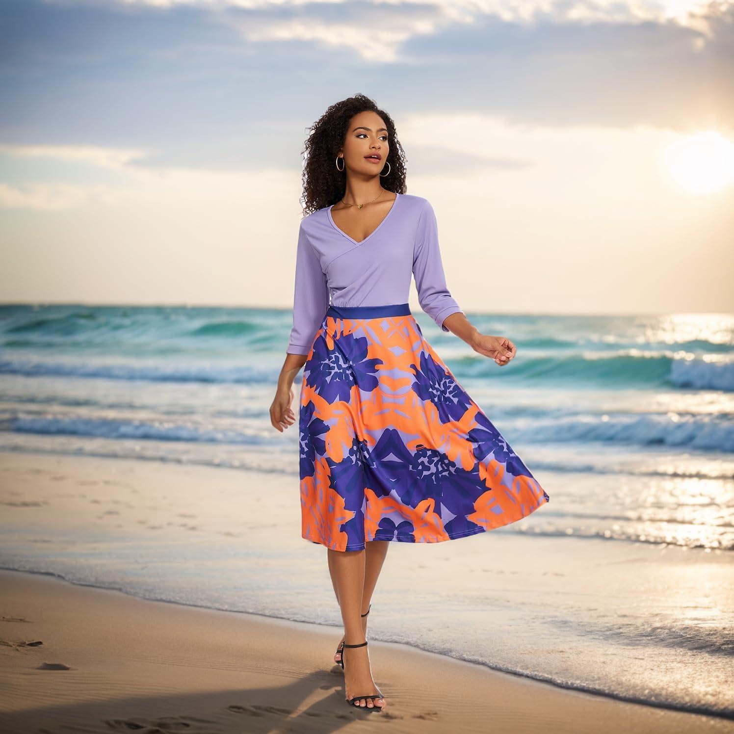 UOUA Women Wrap Midi Dress Casual Floral A-Line Dresses 3/4 Sleeves V-Neck Cocktail Party Dress LightBlue 2XL