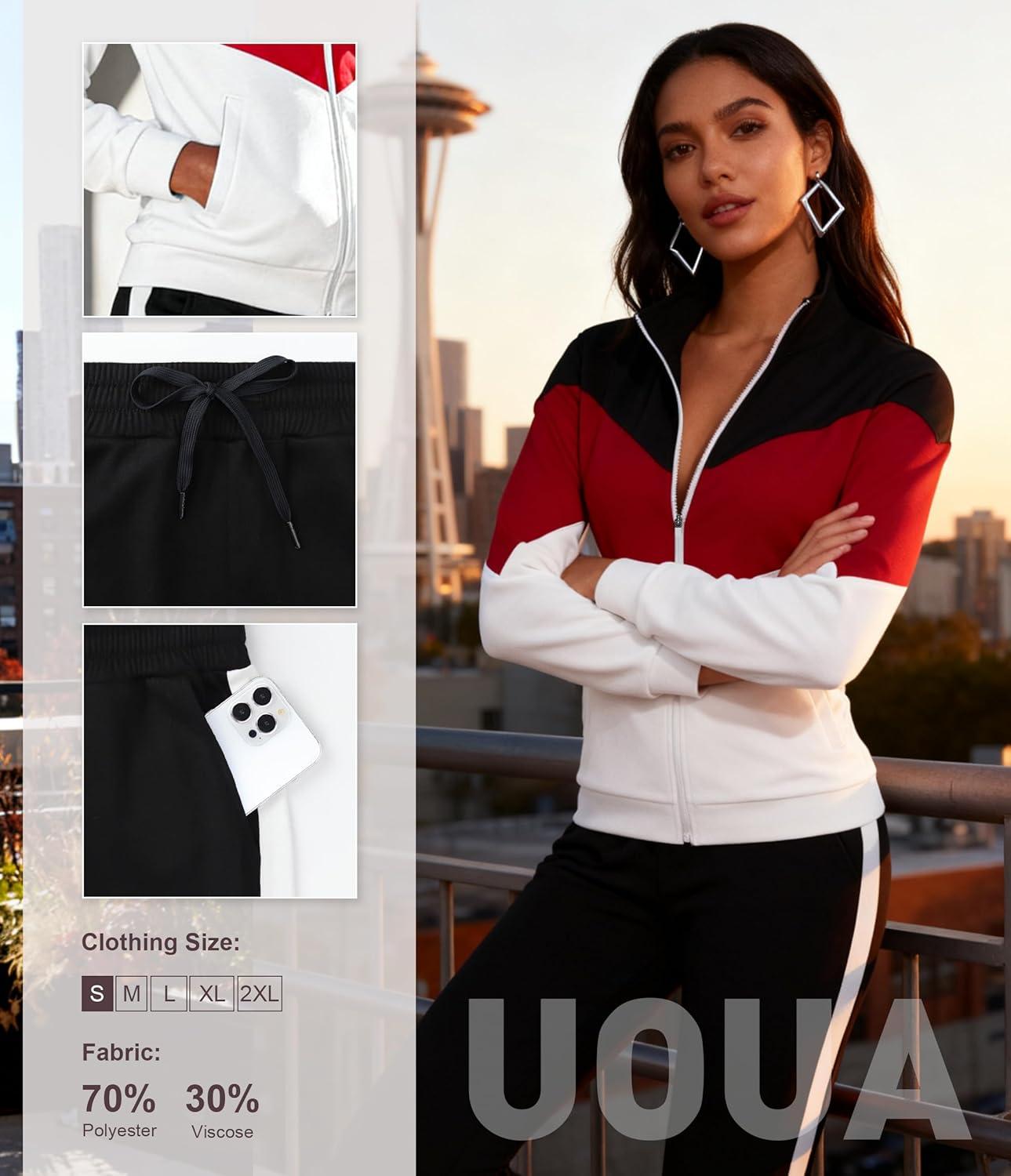 UOUA Women’s 2 Piece Set Tracksuit Long Sleeve Zip Jacket & Jogger Pants Workout Lounge Casual Outfit Sweatsuits(Red)