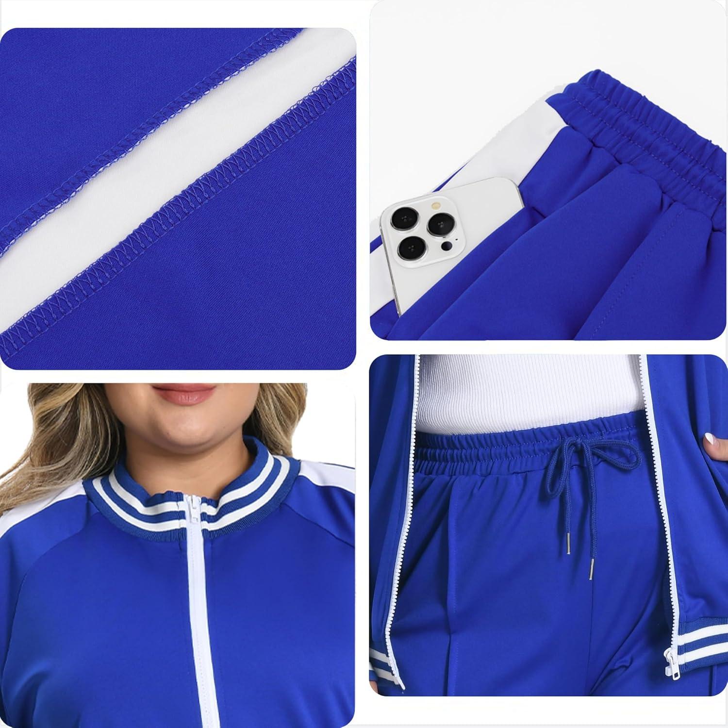 UOUA Women’s Plus Size Jogging Suit 2 Piece Sweatsuit Long Sleeve Jacket & Pants Two Piece Track Set Outfit(Stripe Blue)