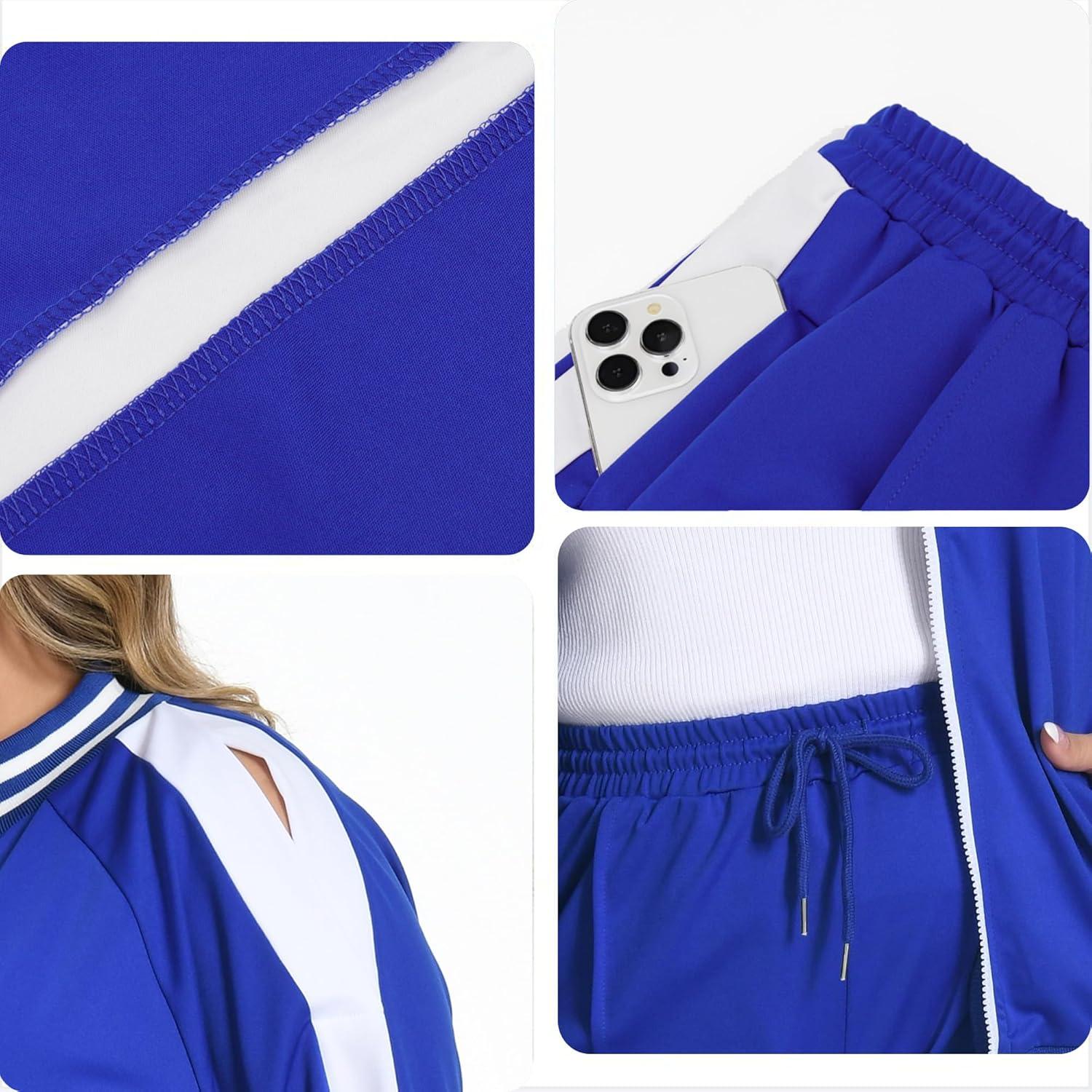 UOUA Plus Size 80s Outfit for Women 90s Costume Long Sleeves Windbreaker 2 Piece Party Tracksuit(Blue White)