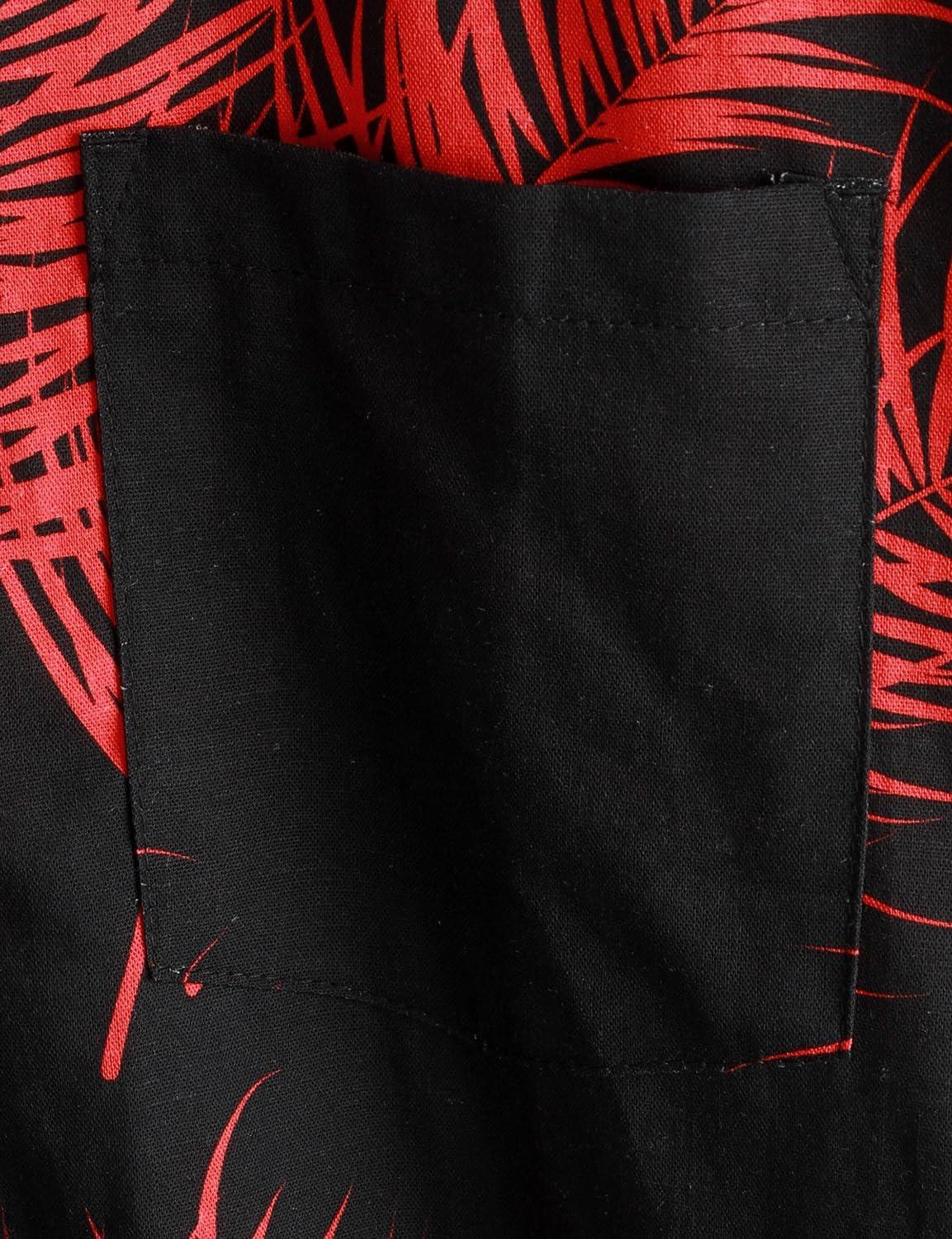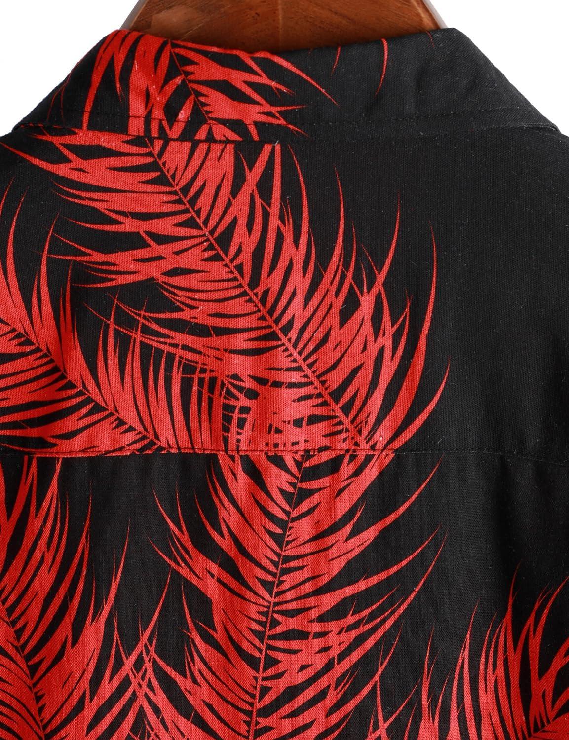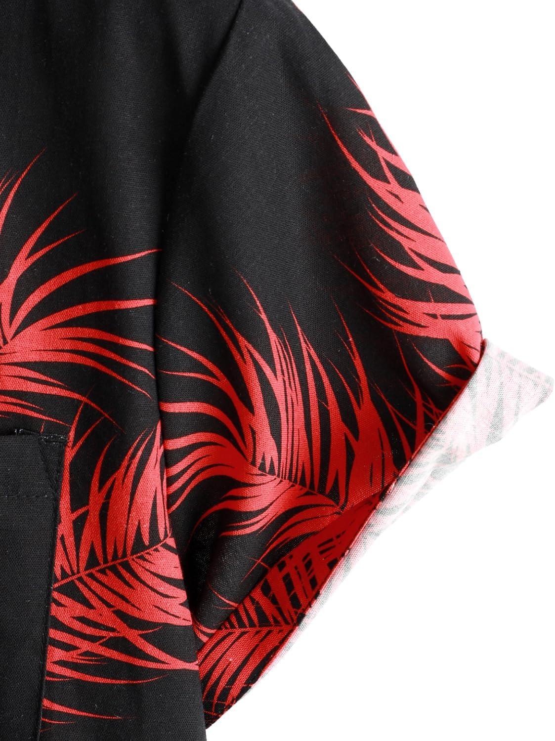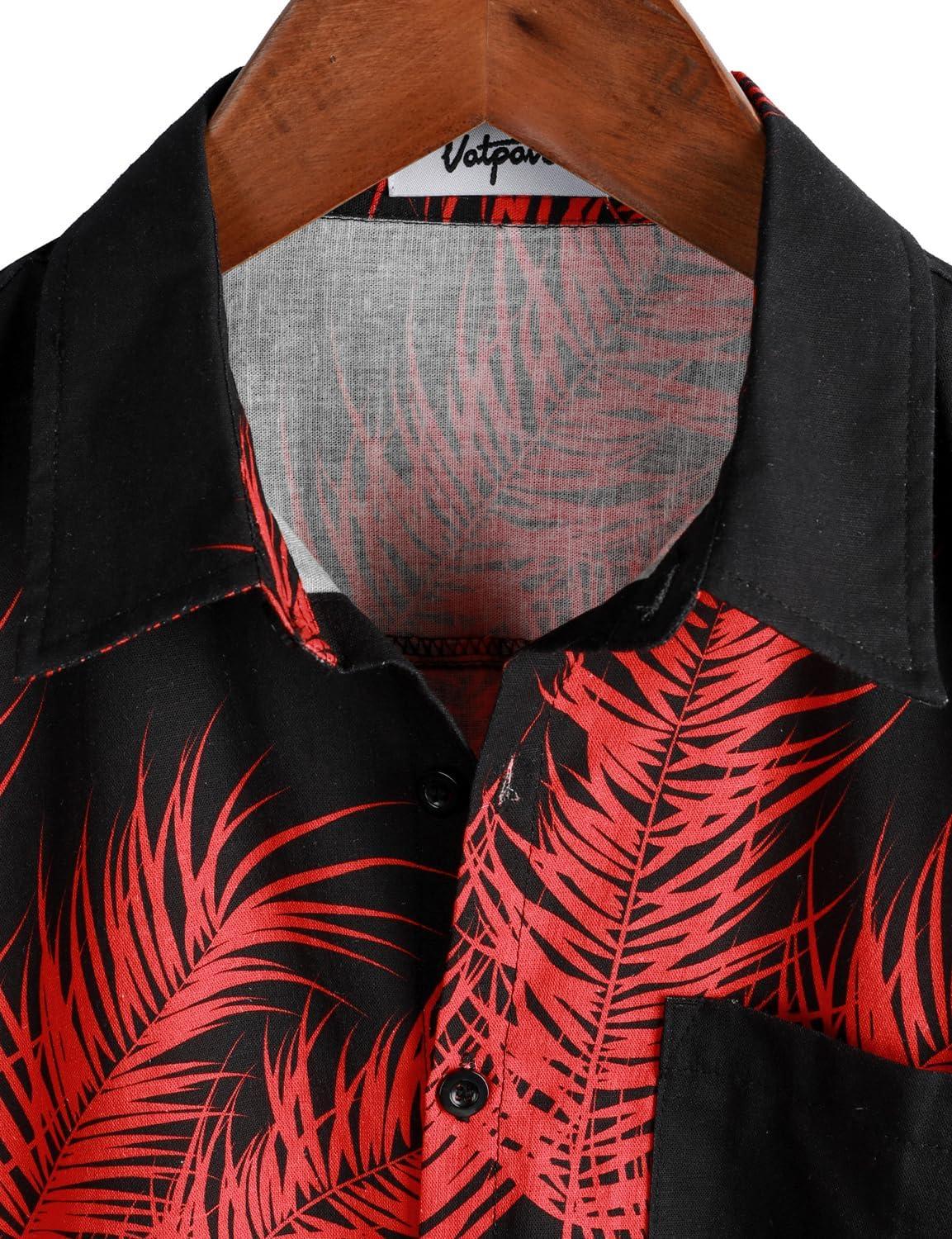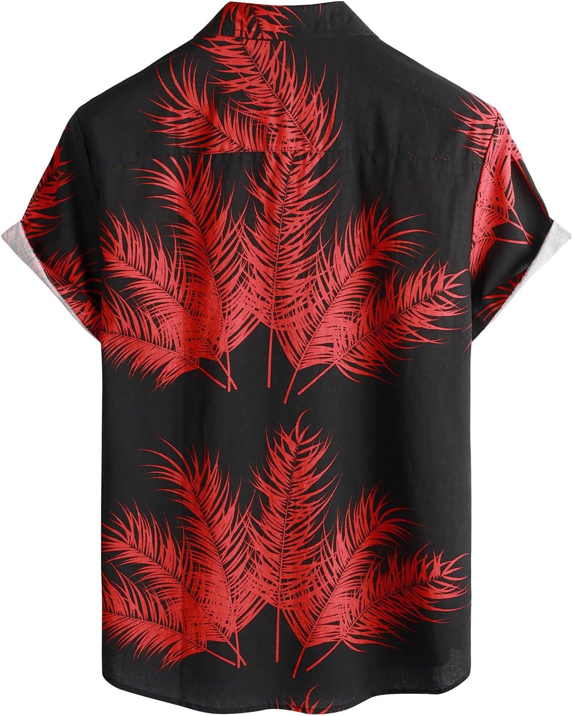 VATPAVE Mens Hawaiian Floral Shirts Cotton Linen Casual Button Down Short Sleeve Beach Shirts(Blackred)