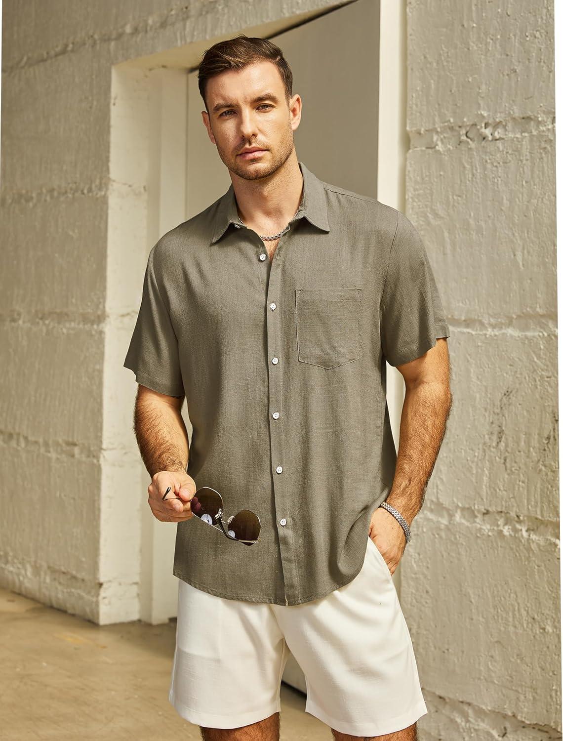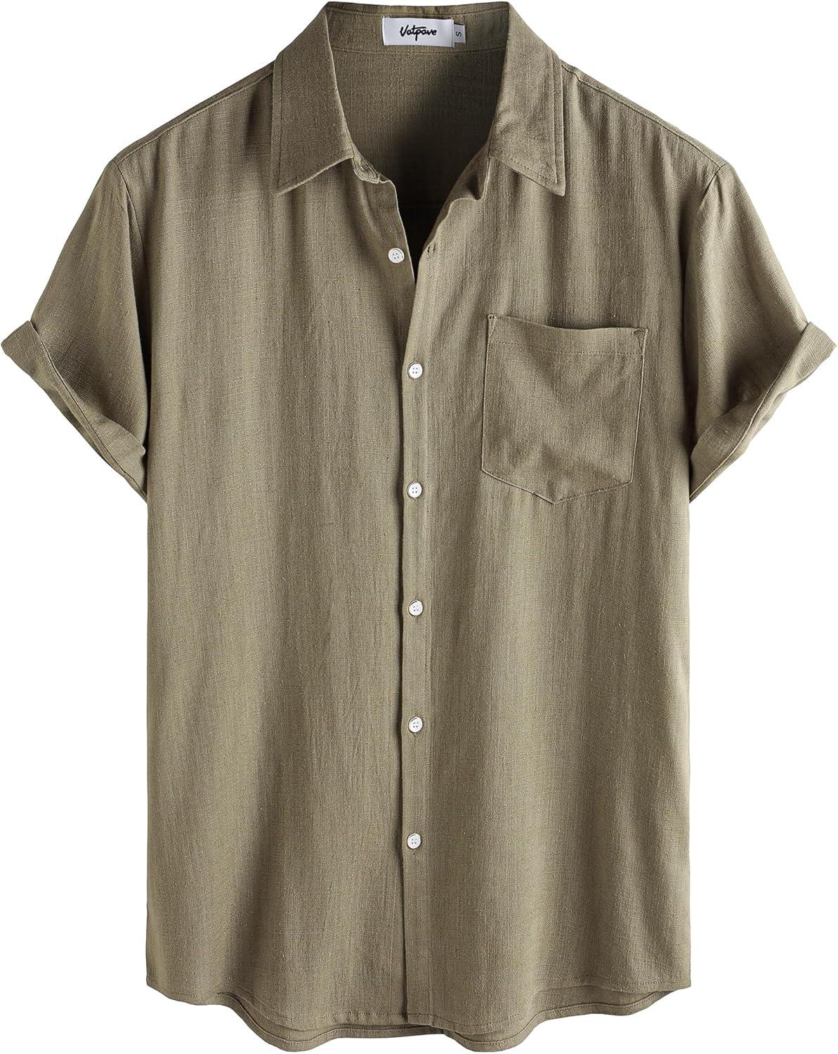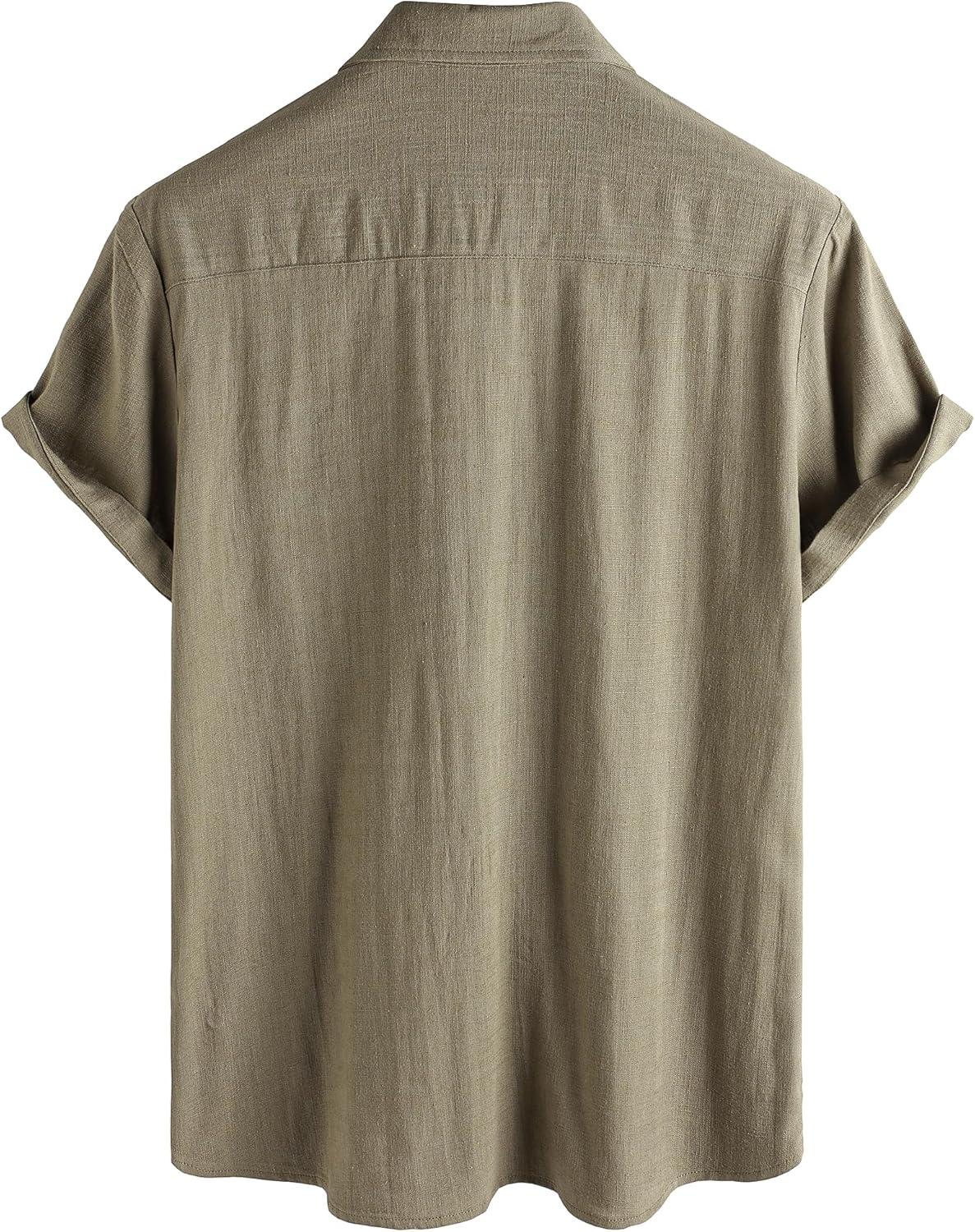 VATPAVE Mens Hawaiian Floral Shirts Cotton Linen Casual Button Down Short Sleeve Beach Shirts(Coffee)