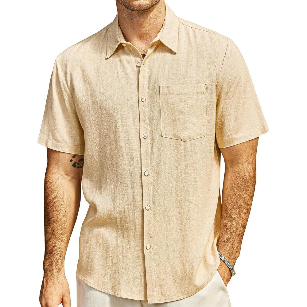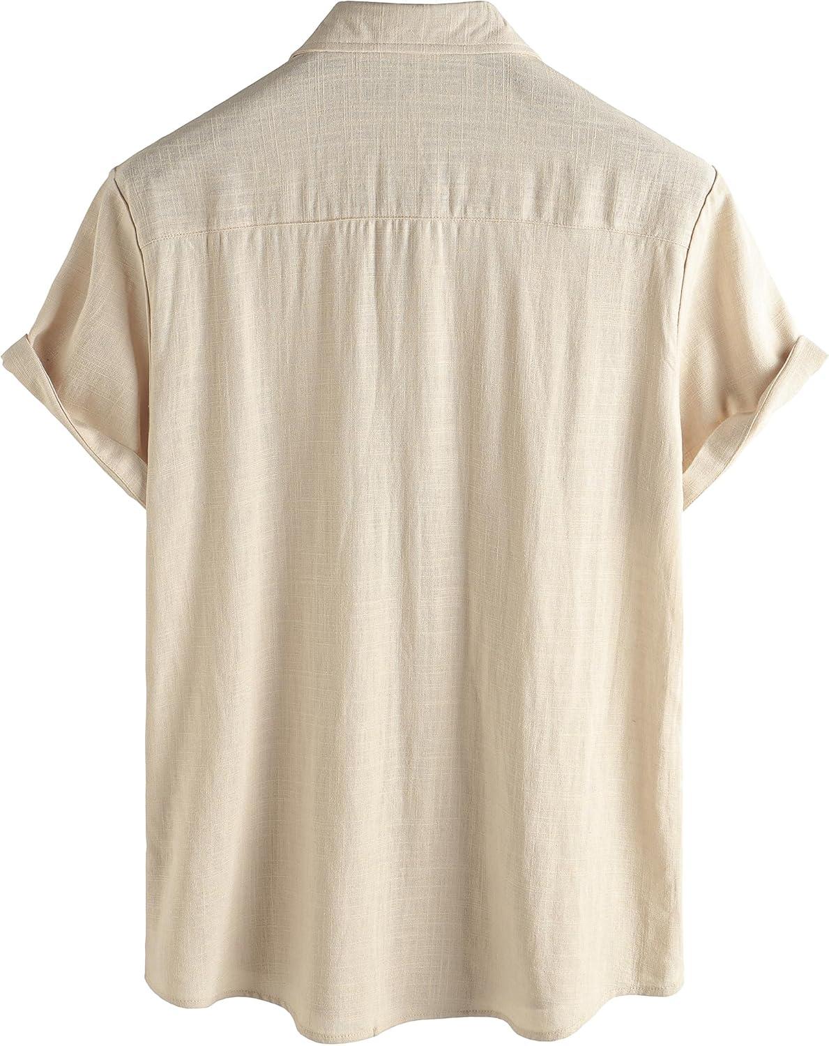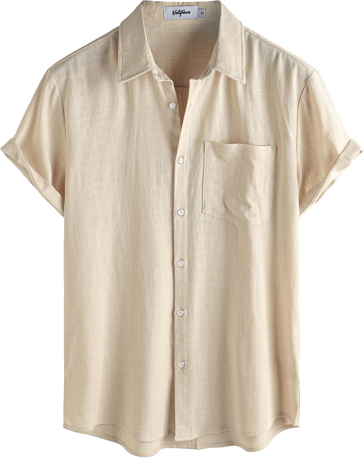 VATPAVE Mens Hawaiian Floral Shirts Cotton Linen Casual Button Down Short Sleeve Beach Shirts(Khaki)