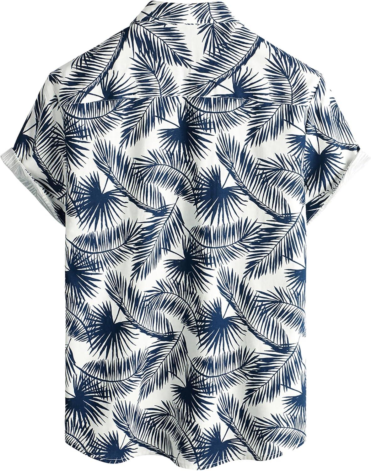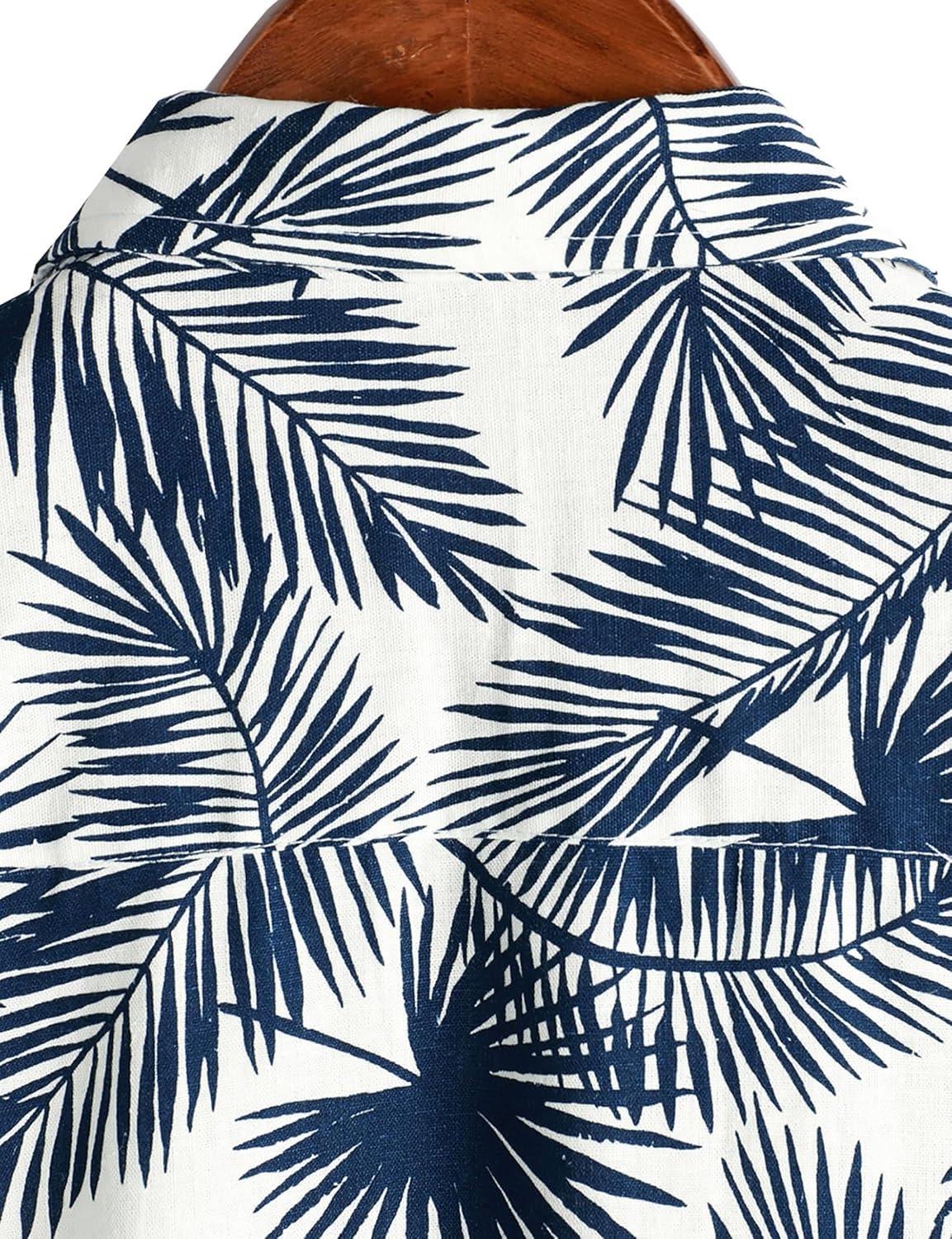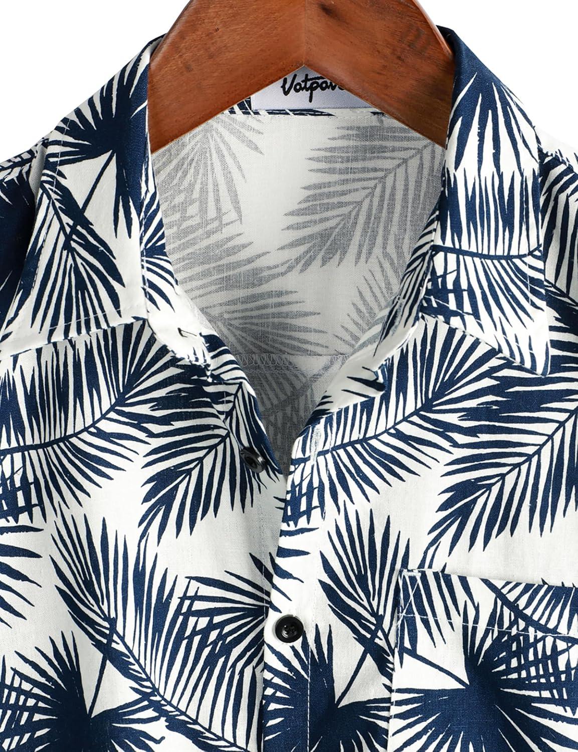 VATPAVE Mens Hawaiian Floral Shirts Cotton Linen Casual Button Down Short Sleeve Beach Shirts(Navy)