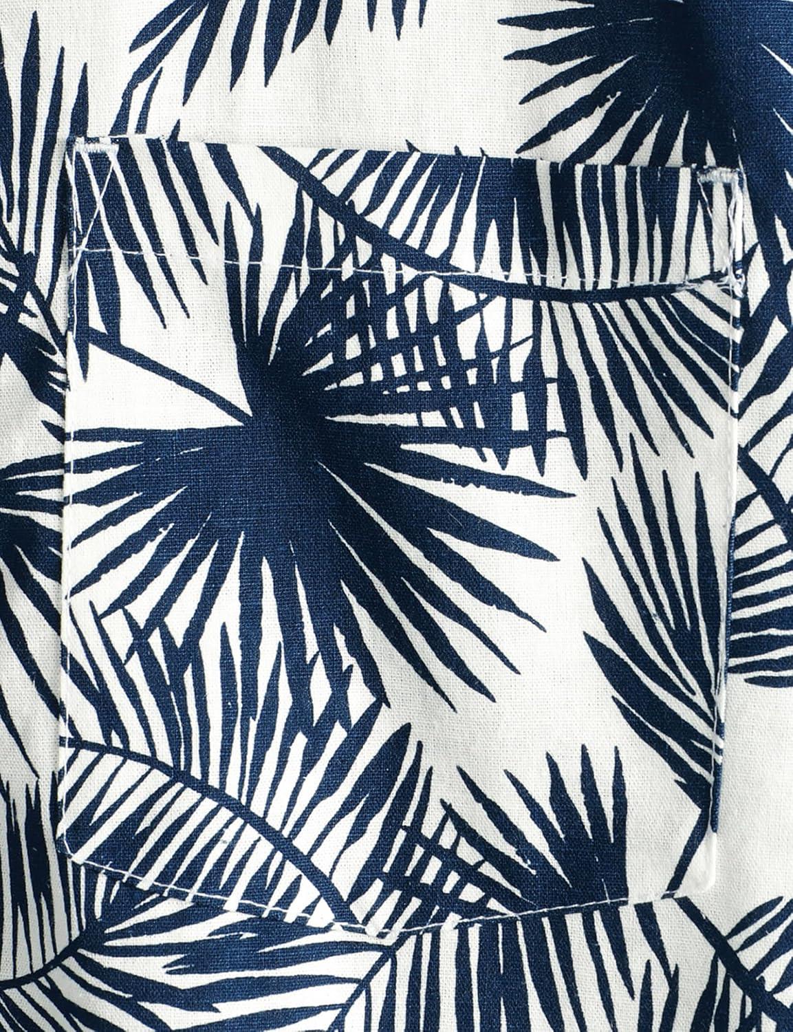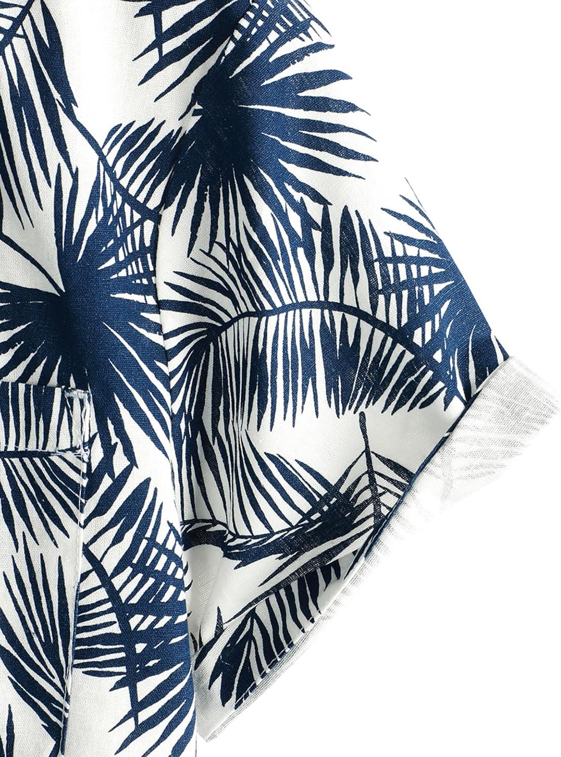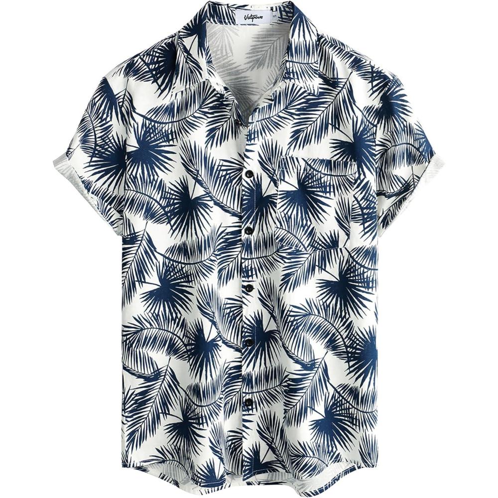 VATPAVE Mens Hawaiian Floral Shirts Cotton Linen Casual Button Down Short Sleeve Beach Shirts(Navy)