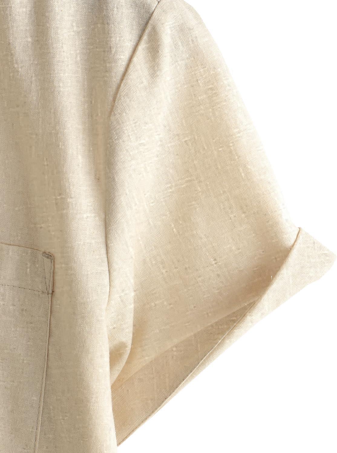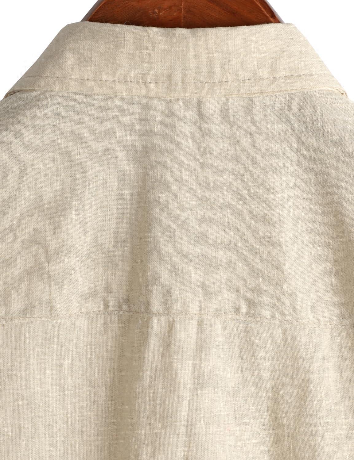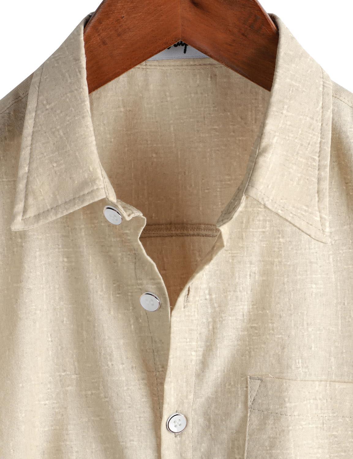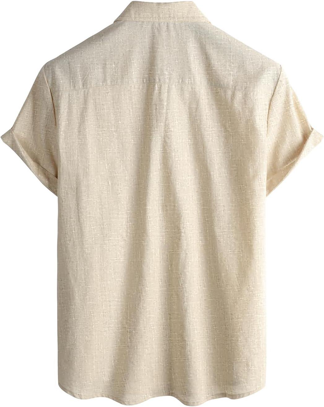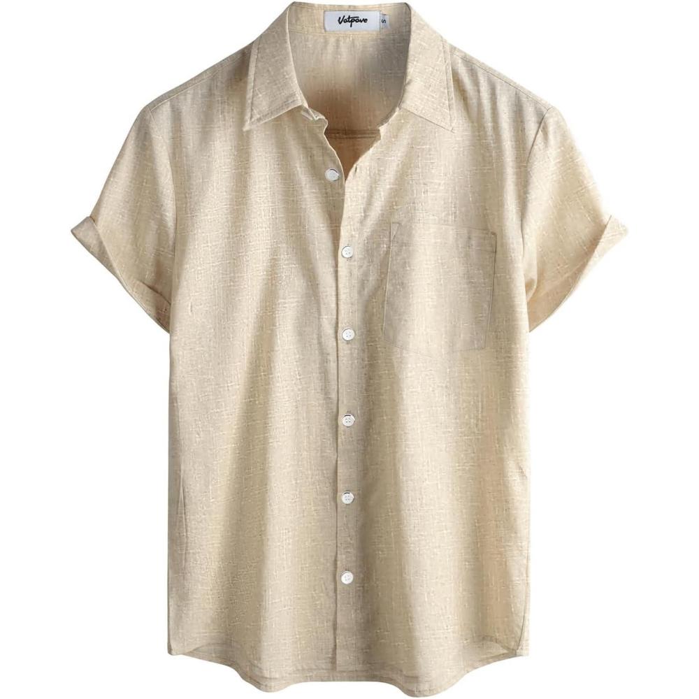 VATPAVE Mens Hawaiian Floral Shirts Cotton Linen Casual Button Down Short Sleeve Beach Shirts(Pure Khaki)