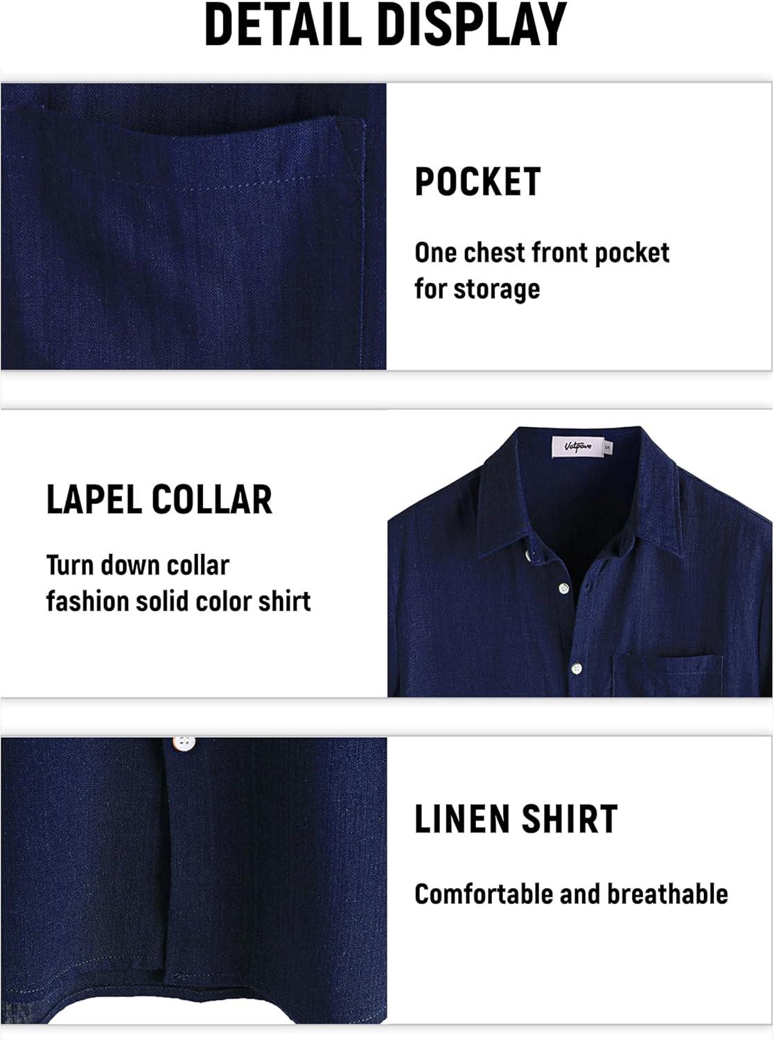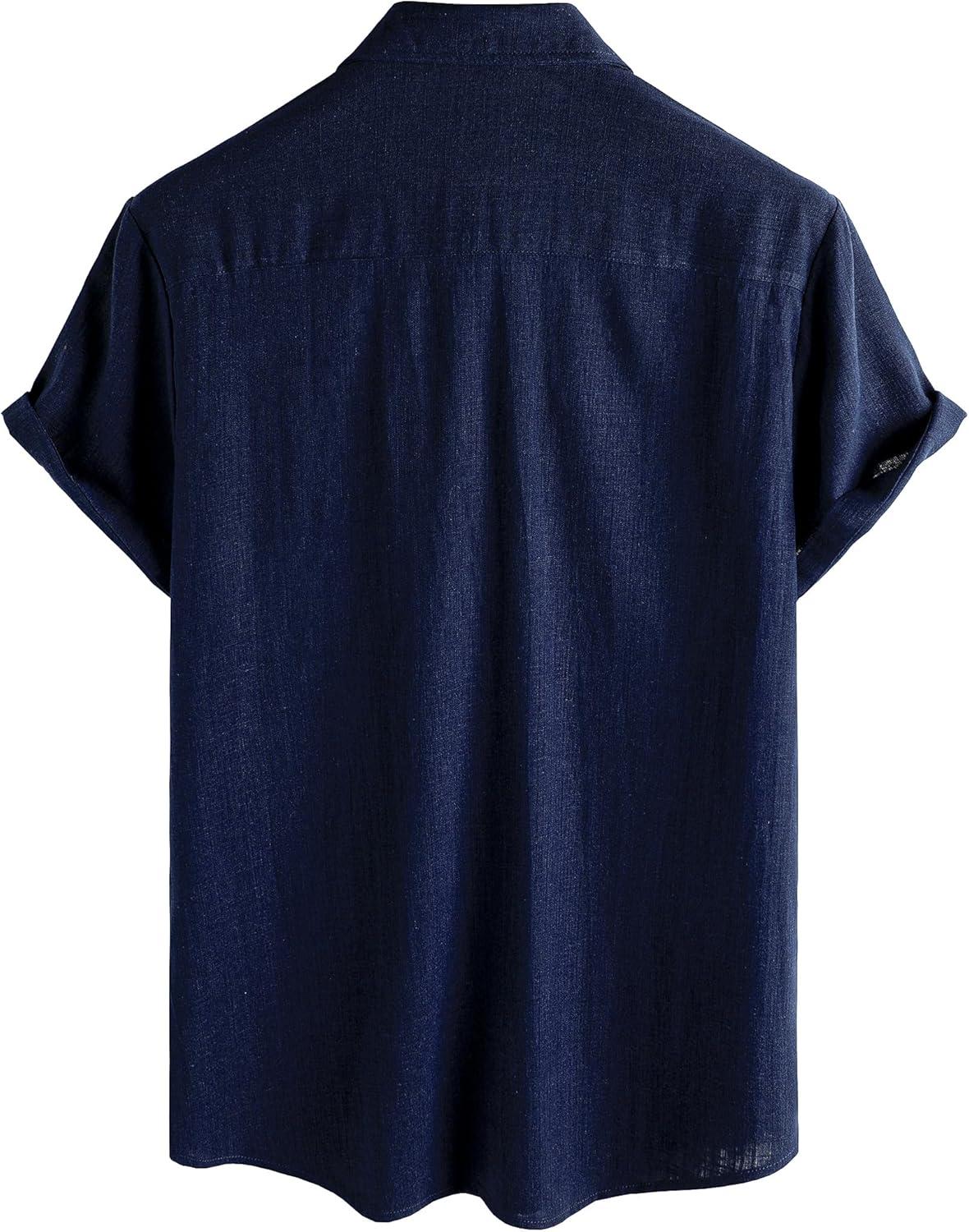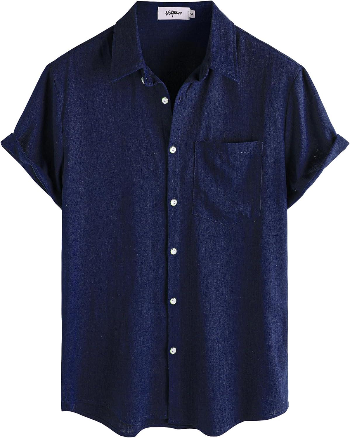 VATPAVE Mens Hawaiian Floral Shirts Cotton Linen Casual Button Down Short Sleeve Beach Shirts(Pure Navy)