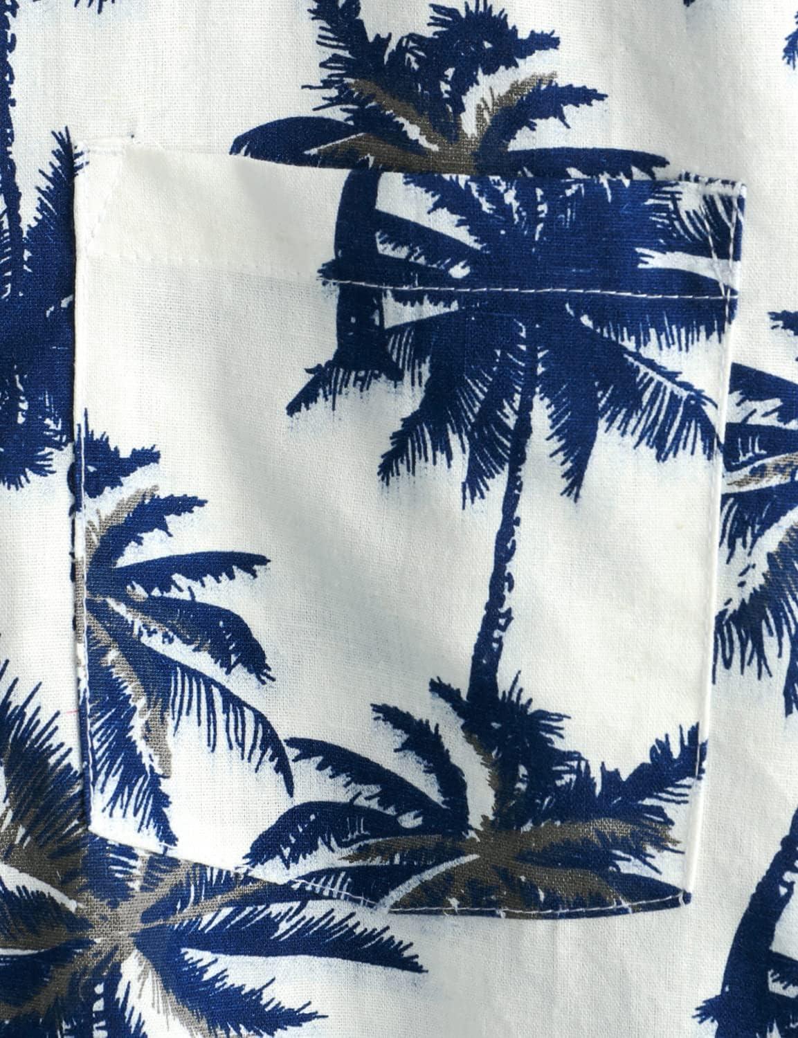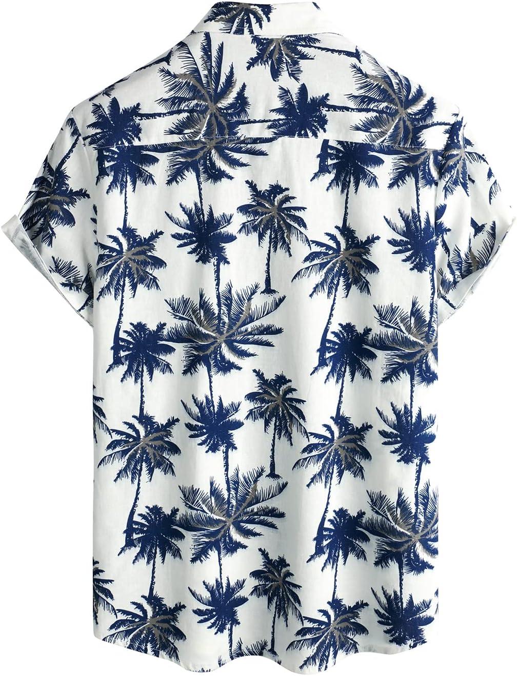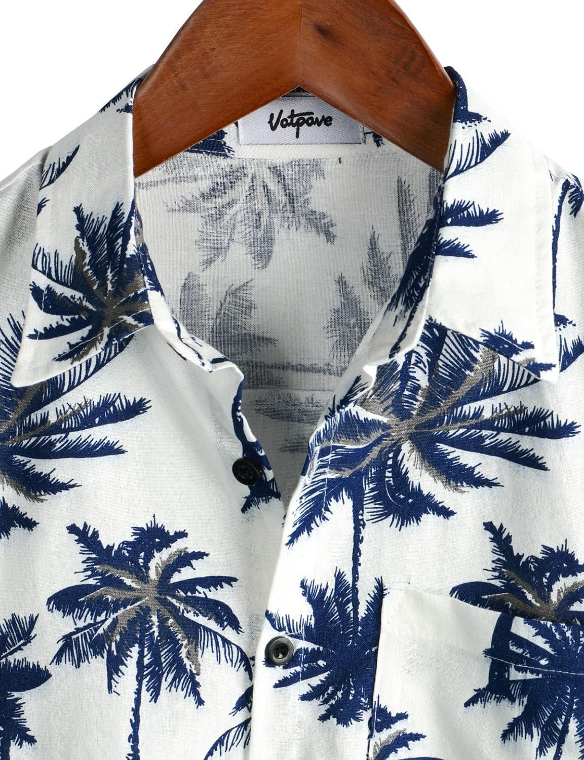 VATPAVE Mens Hawaiian Floral Shirts Cotton Linen Casual Button Down Short Sleeve Beach Shirts(White)