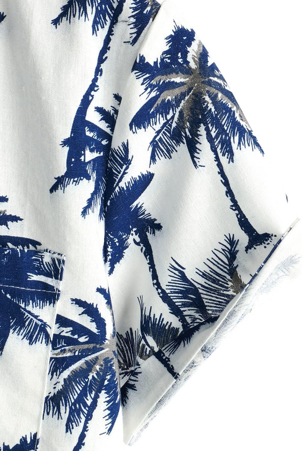 VATPAVE Mens Hawaiian Floral Shirts Cotton Linen Casual Button Down Short Sleeve Beach Shirts(Beige Blue)