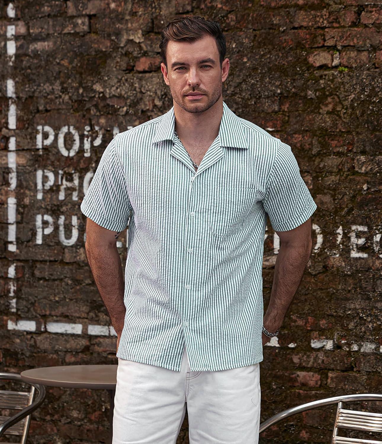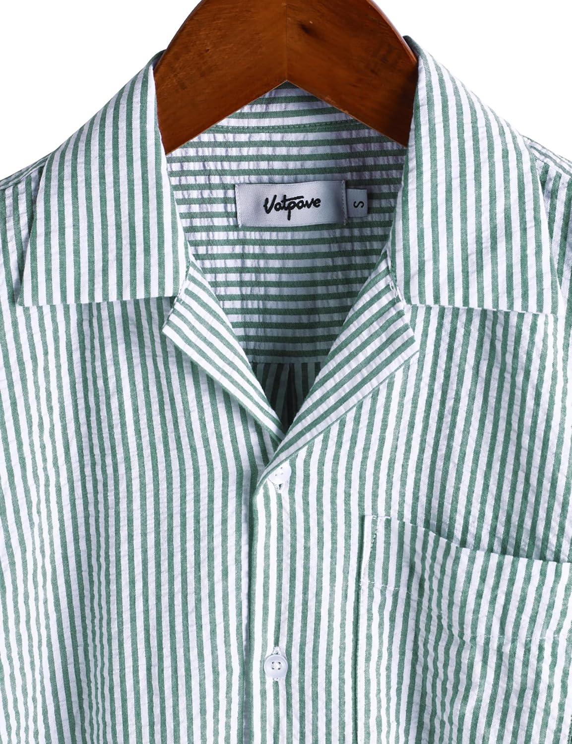 VATPAVE Mens Striped Summer Shirt Casual Button Down Short Sleeve Beach Shirts Cotton Shirts for Men(Black Green)