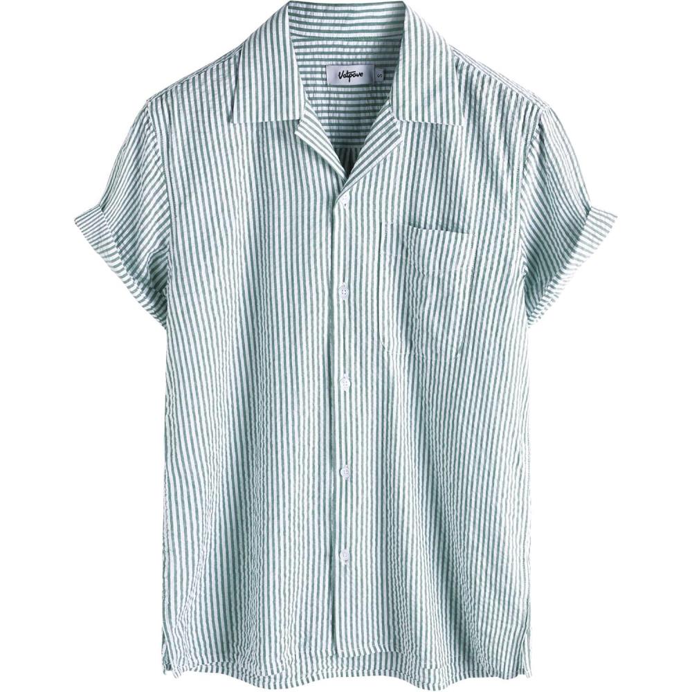 Be the first to review “VATPAVE Mens Striped Summer Shirt Casual Button Down Short Sleeve Beach Shirts Cotton Shirts for Men(Black Green)”