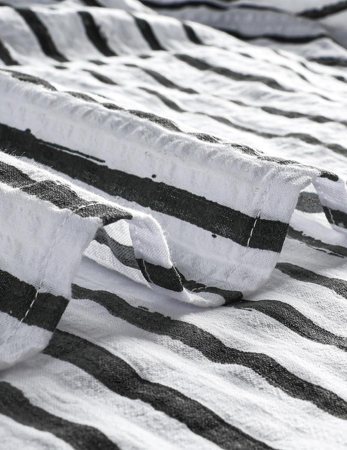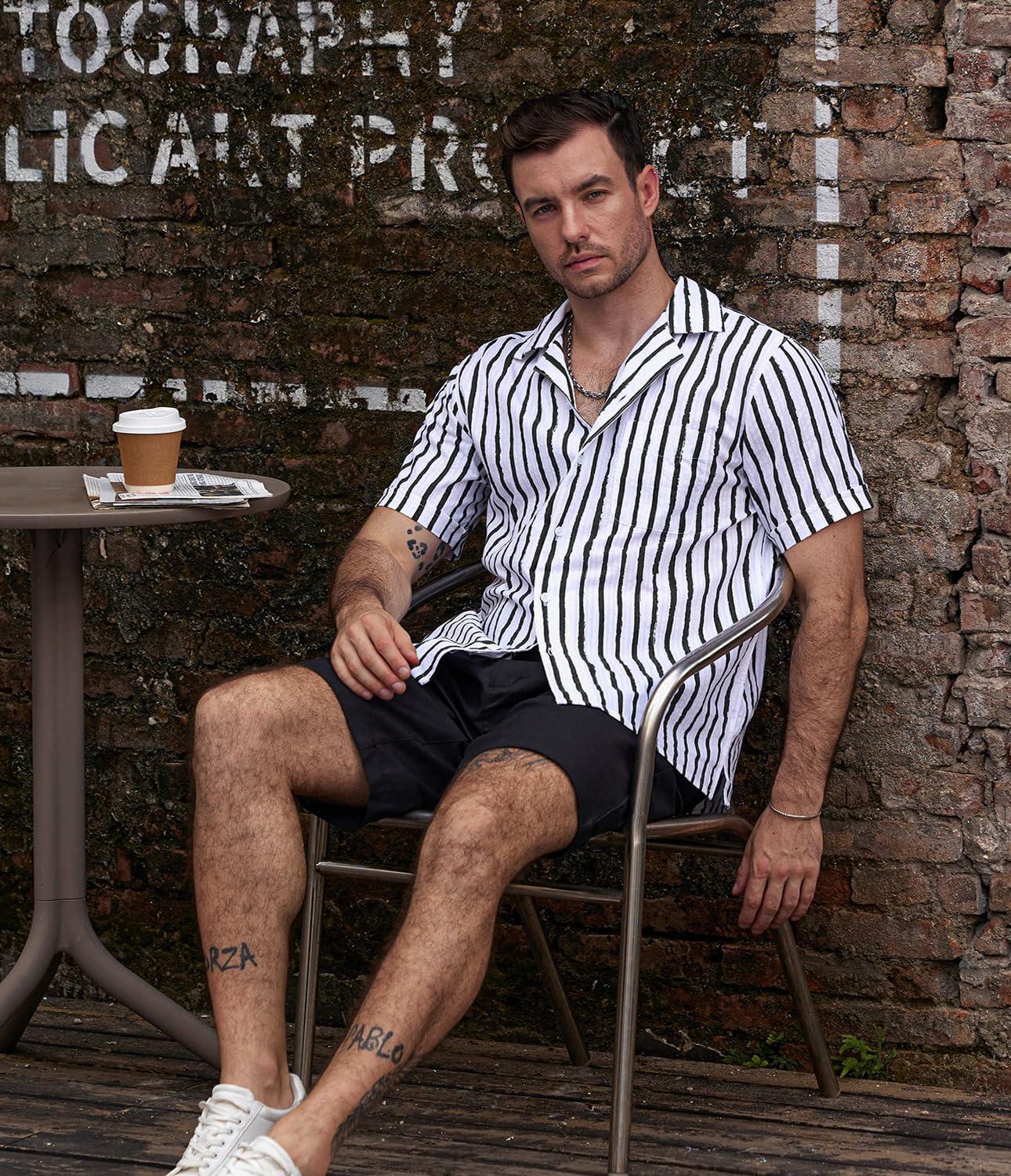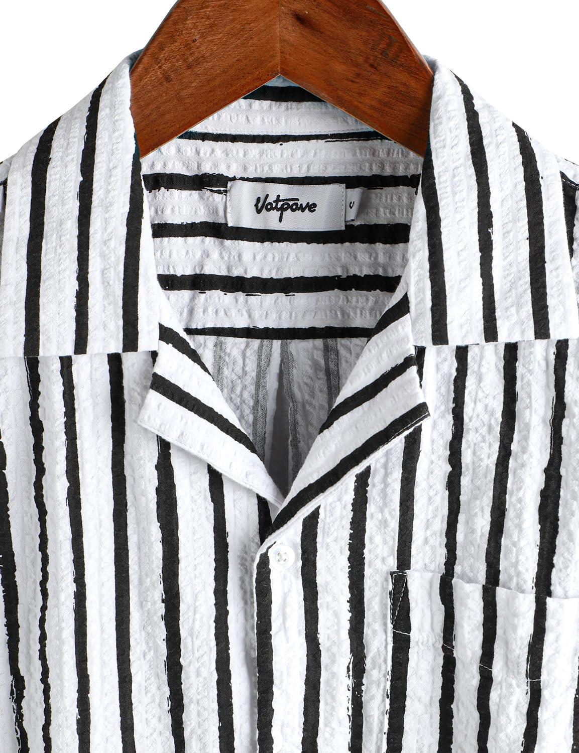 VATPAVE Mens Striped Summer Shirt Casual Button Down Short Sleeve Beach Shirts Cotton Shirts for Men(Blackwhite)