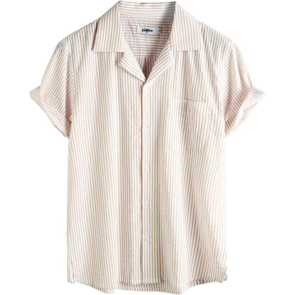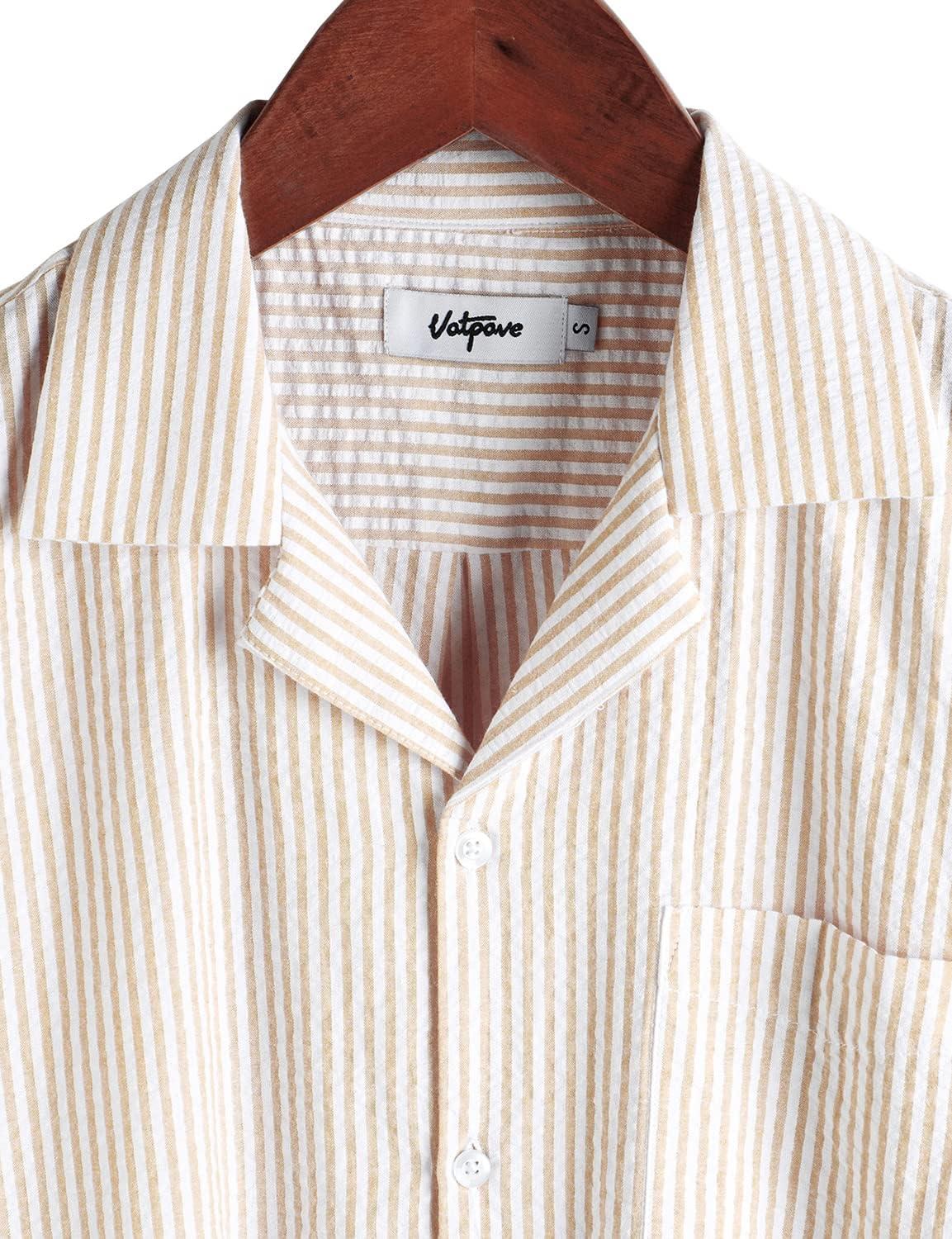 VATPAVE Mens Striped Summer Shirt Casual Button Down Short Sleeve Beach Shirts Cotton Shirts for Men(Khaki)