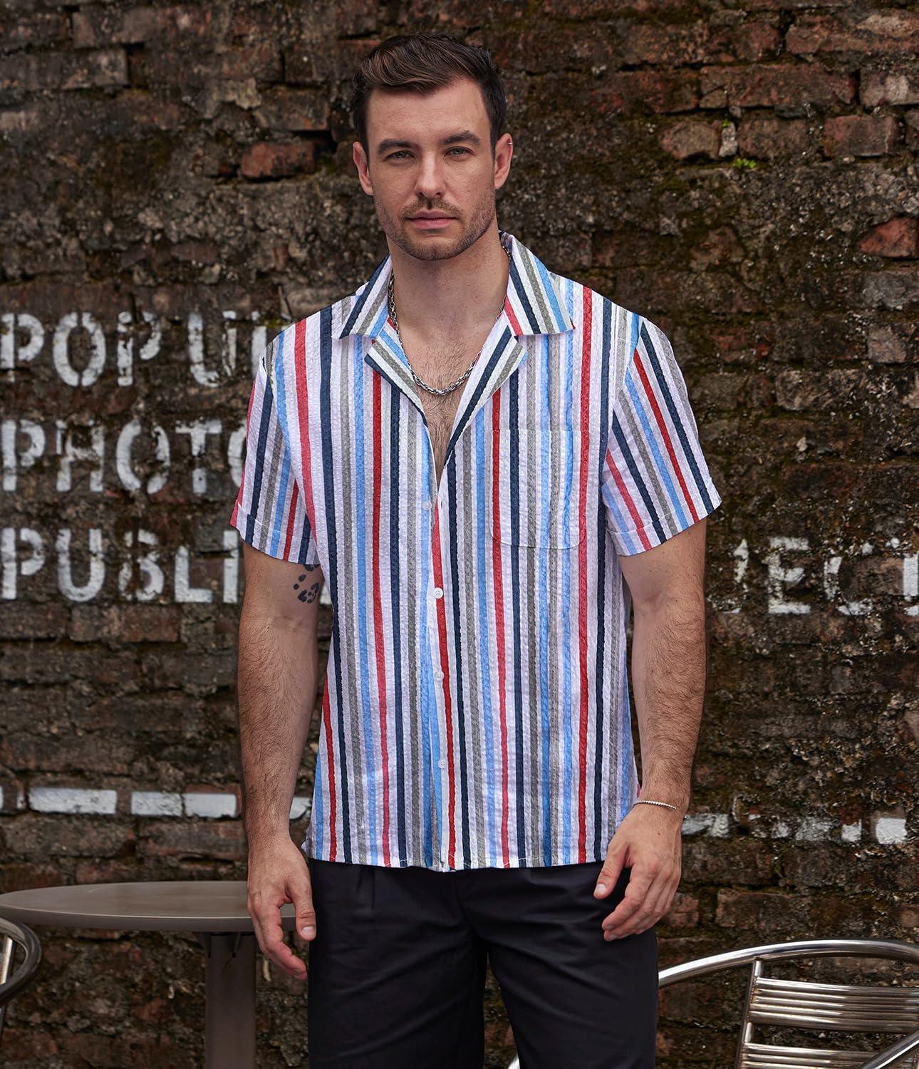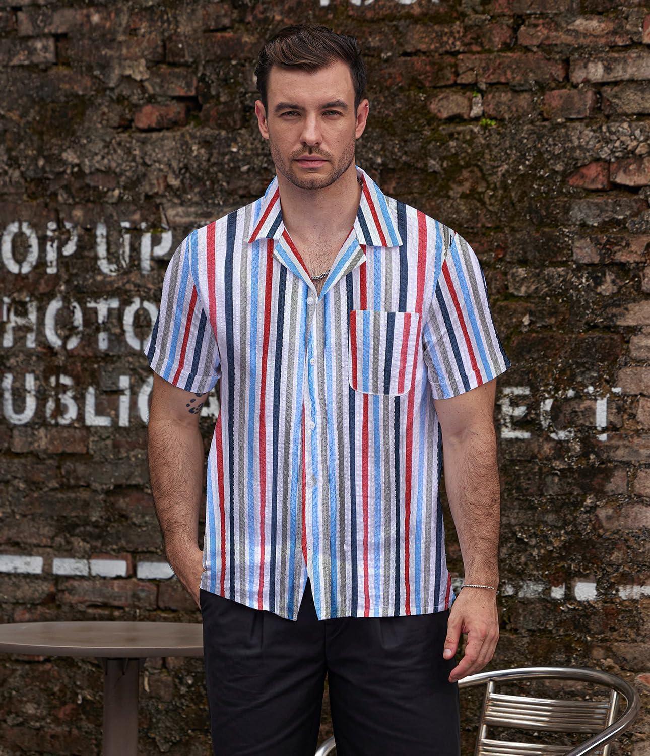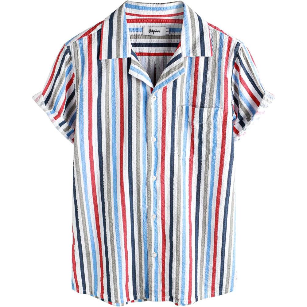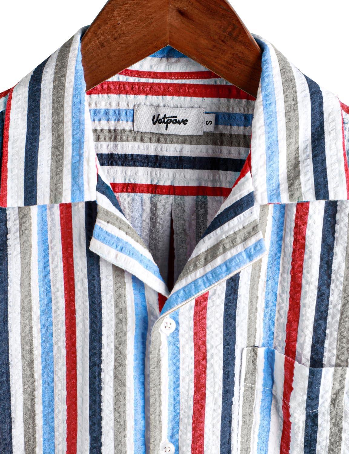 VATPAVE Mens Striped Summer Shirt Casual Button Down Short Sleeve Beach Shirts Cotton Shirts for Men(Multicolor)